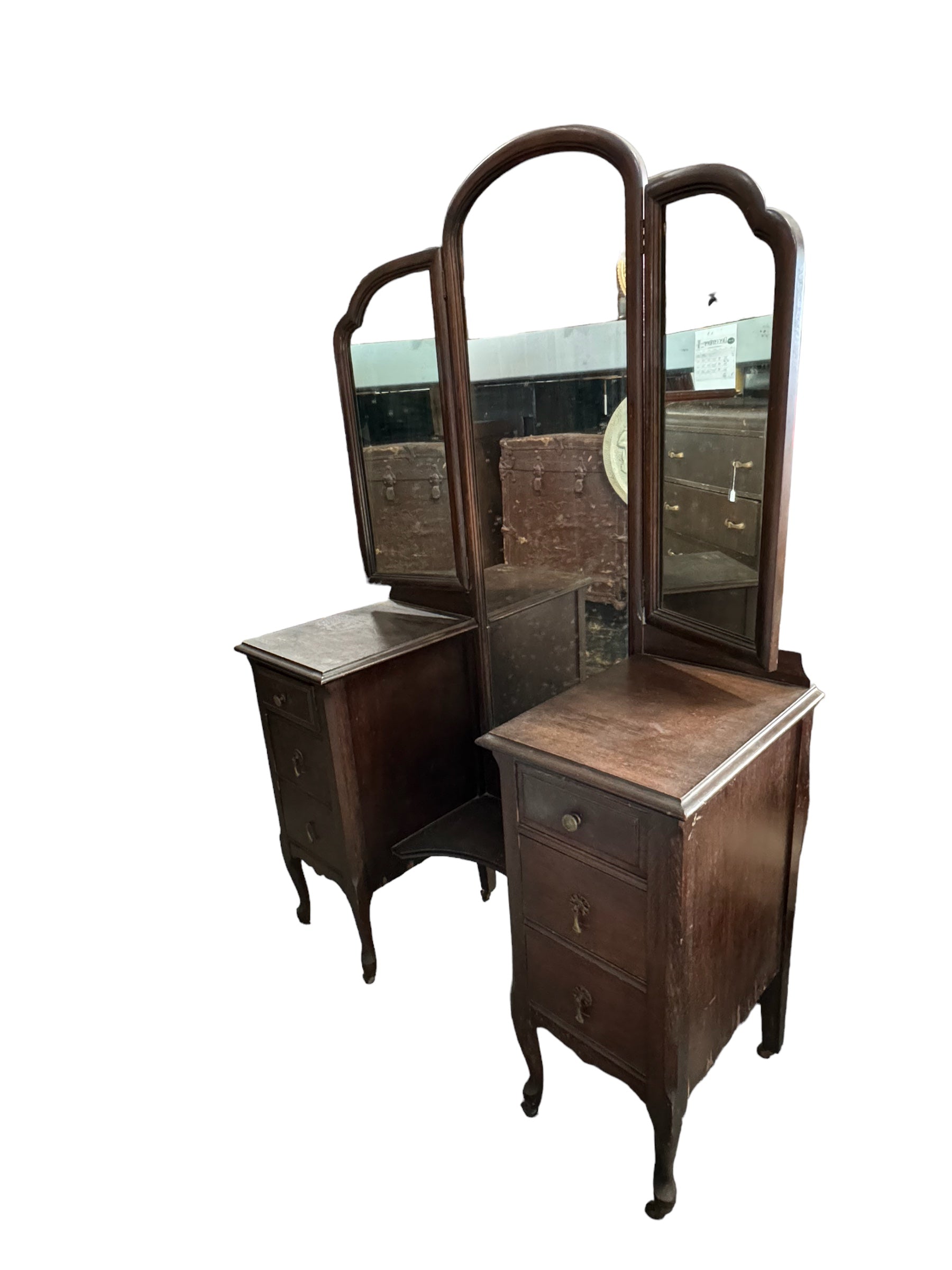 Antique Dressing Table with full-length center Tri-Fold Mirror