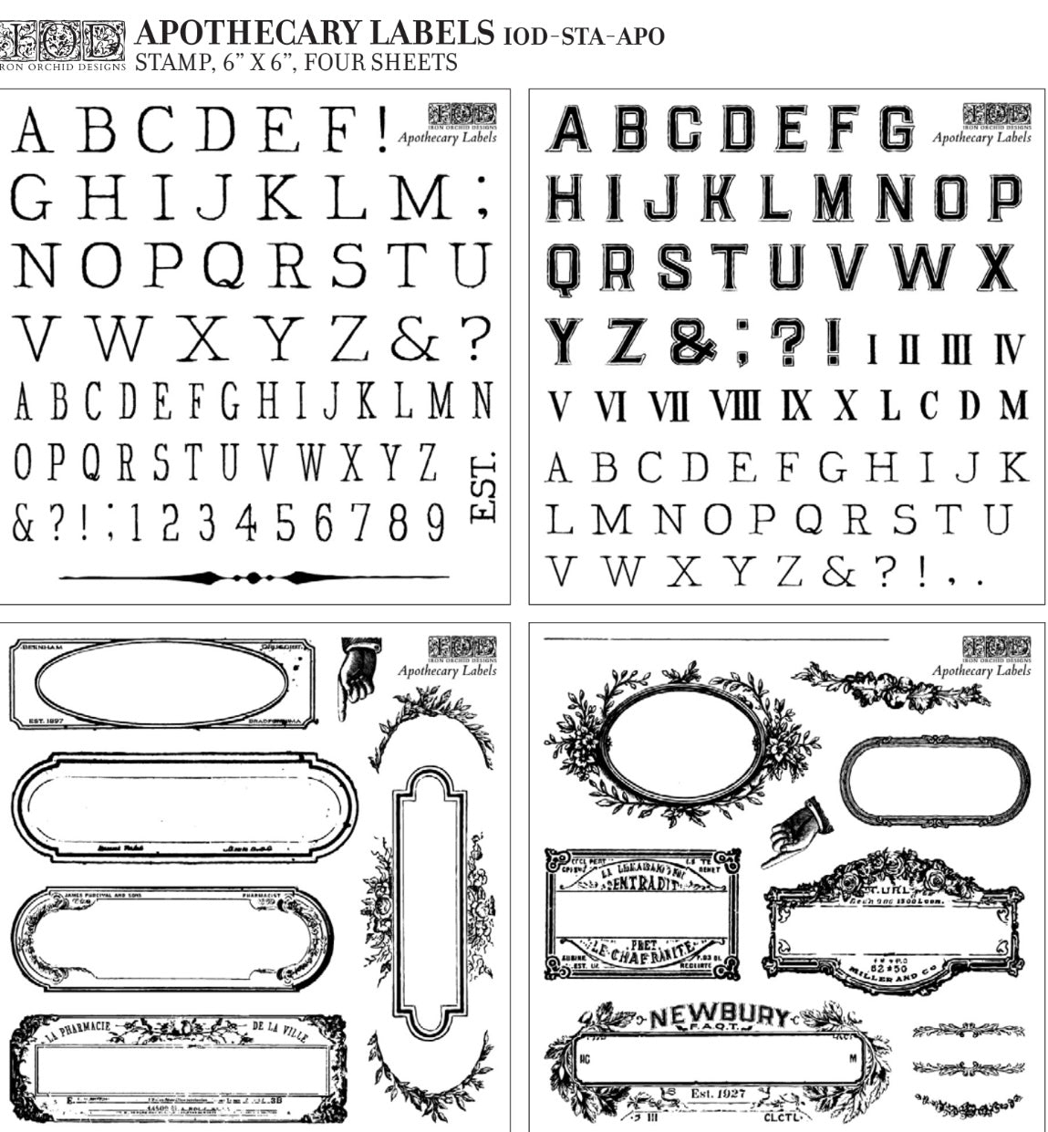 Apothecary Labels Iron Orchid Designs Stamp Set