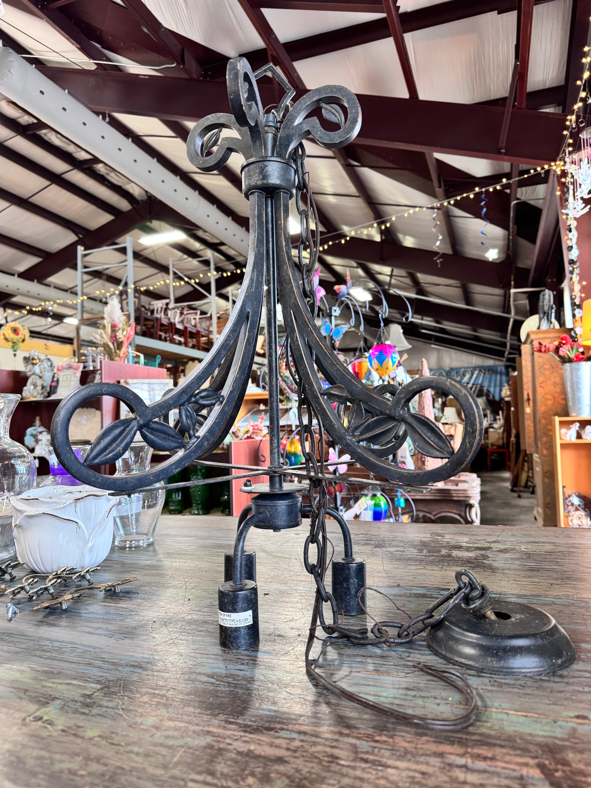 Great freshened up or dress up to match your home. Three lights. Four arms. Scrolls and leaves.