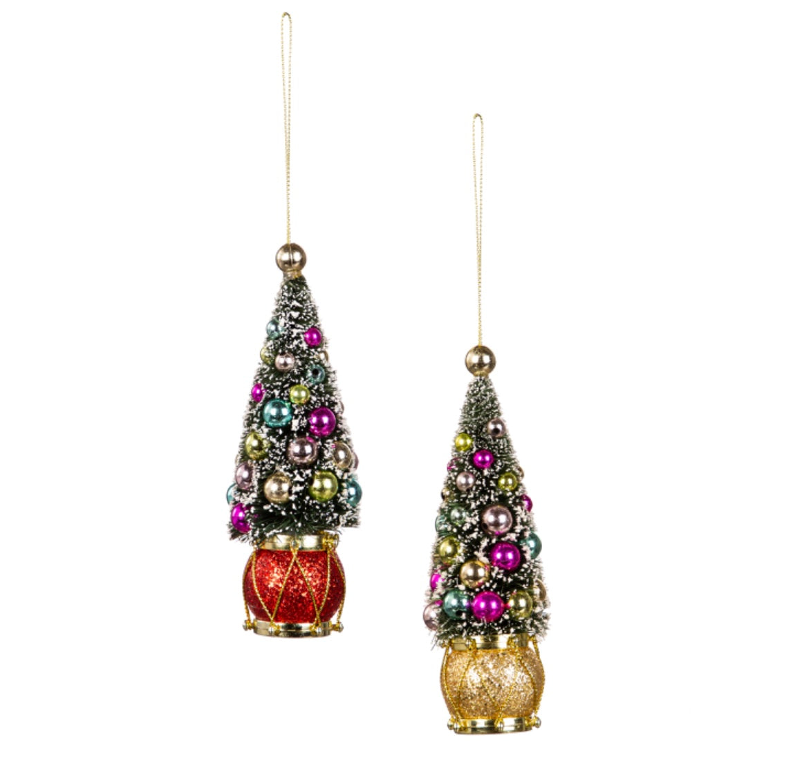 Bottle Brush Christmas Tree Ornament with Drum Base