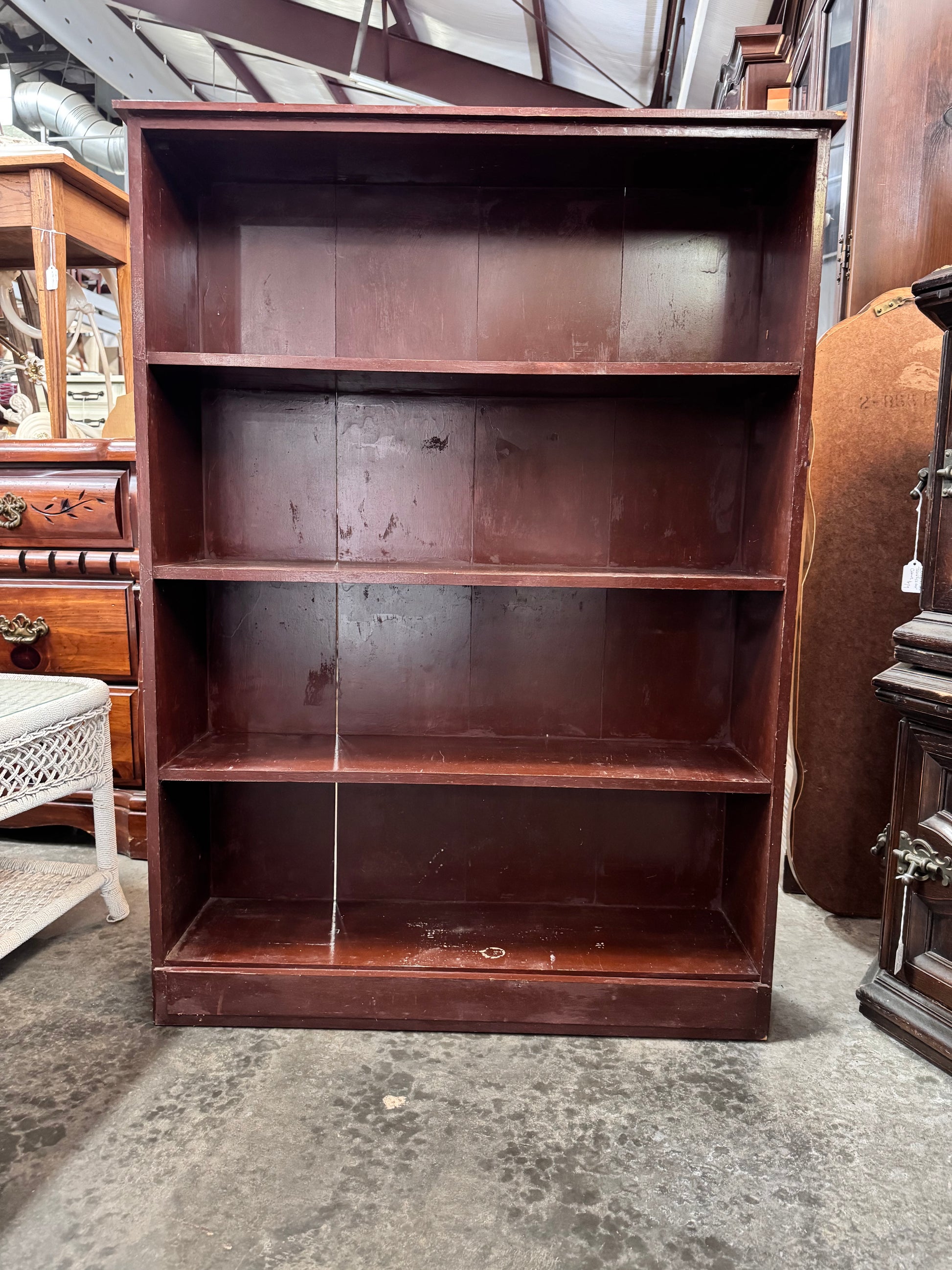 Brown 4-shelf Bookshelf - Mid Century wood construction painted brown. Good vintage condition.