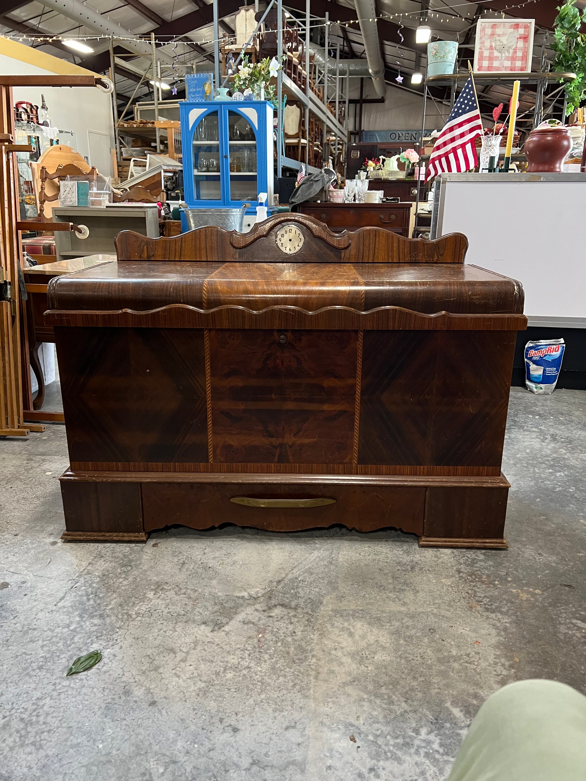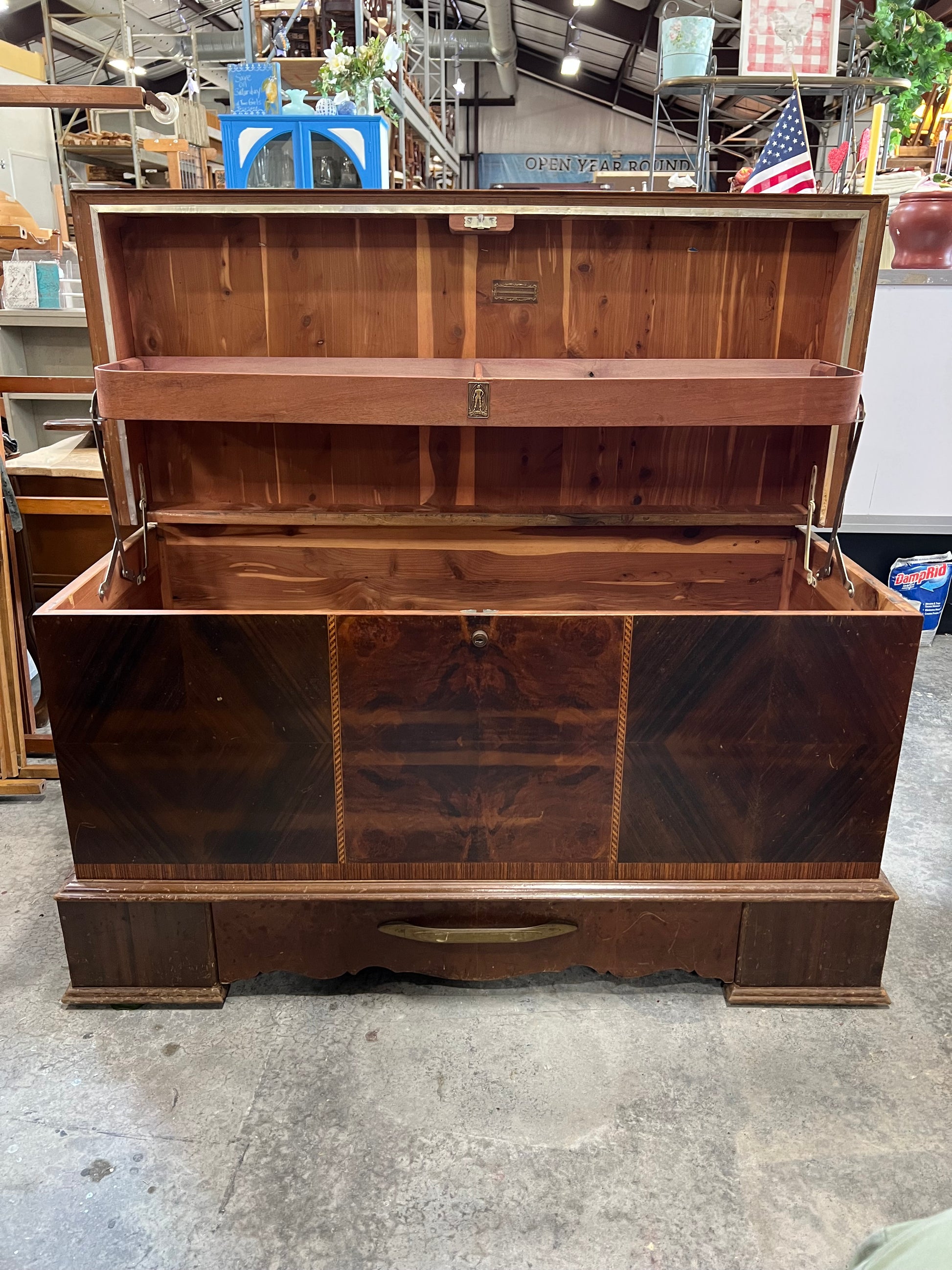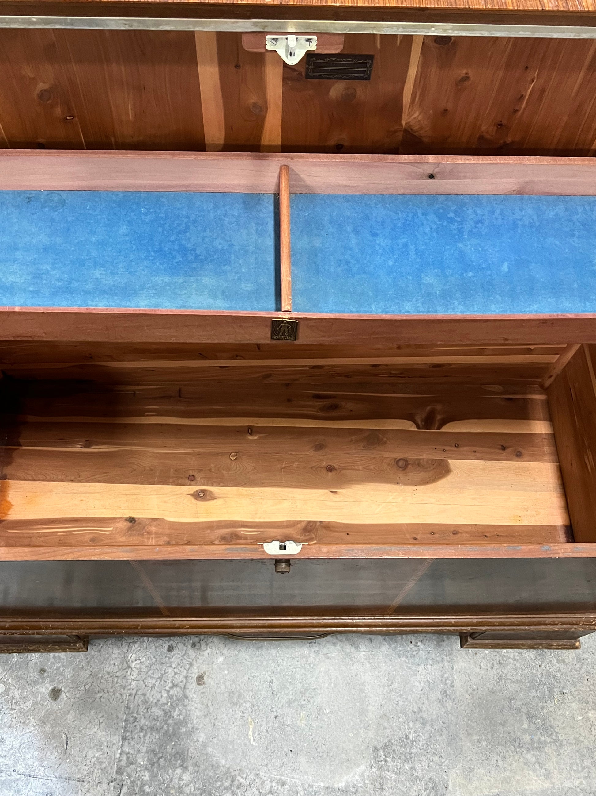 Cavalier Cedar Trunk Backplate with Electric Clock - Bottom Drawer