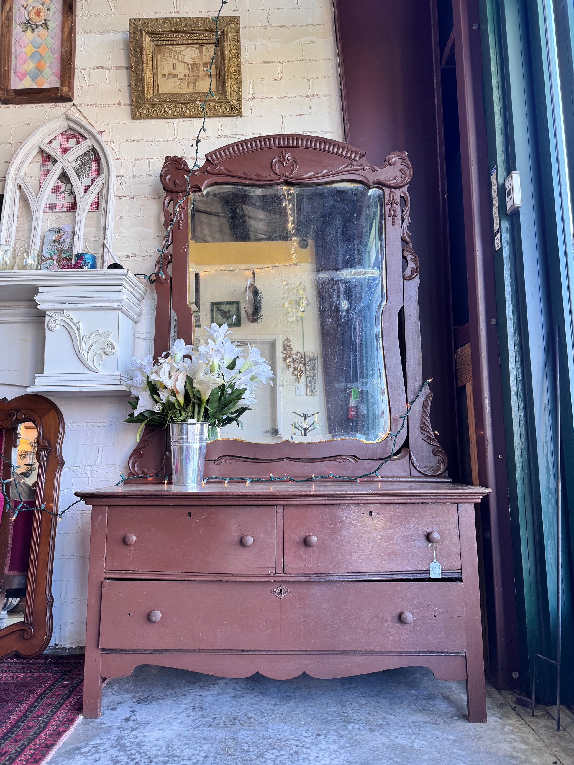 Early Century 2 drawer over 1 Dresser Mirror