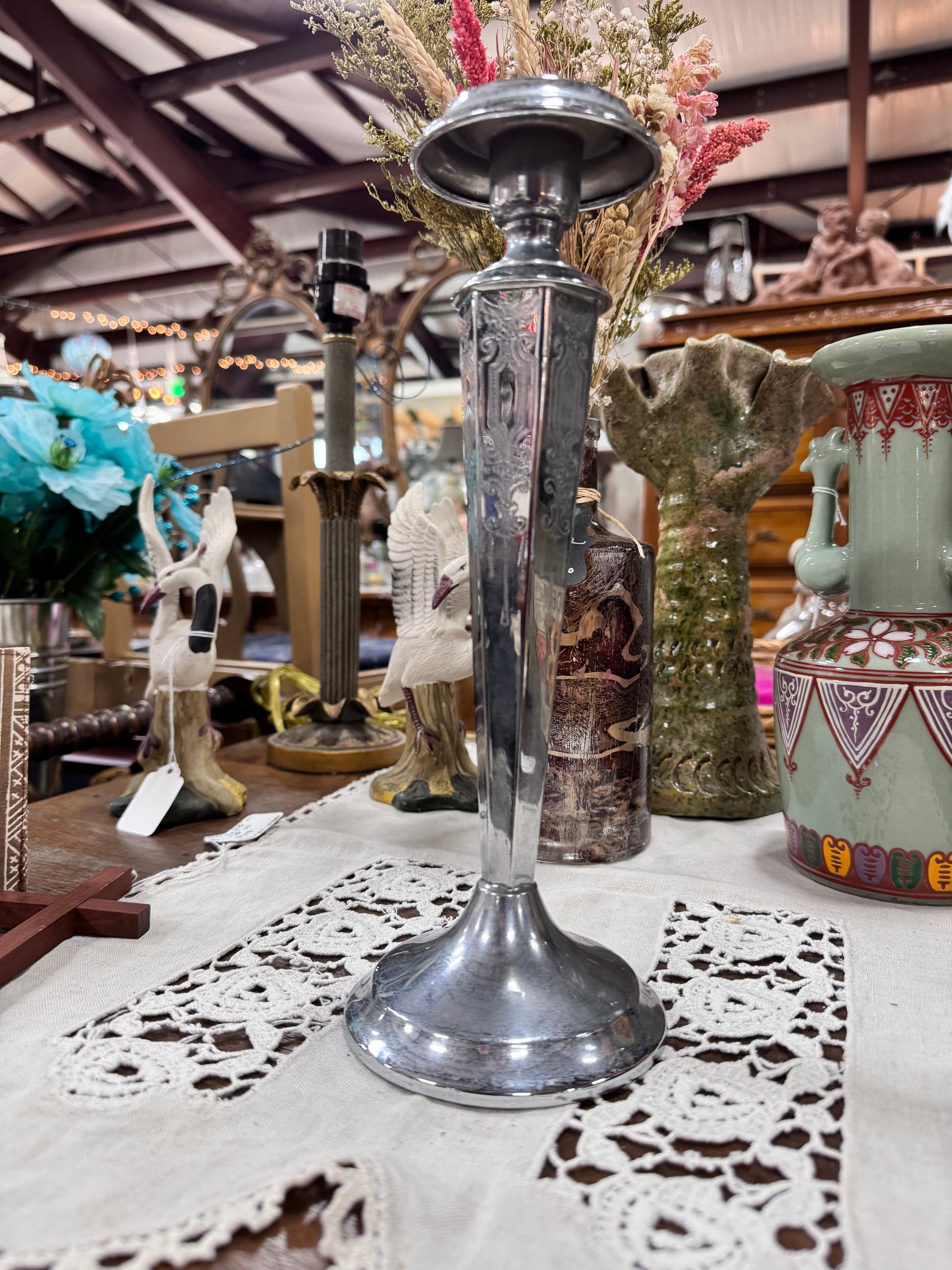 Engraved Chromium Candlestick
