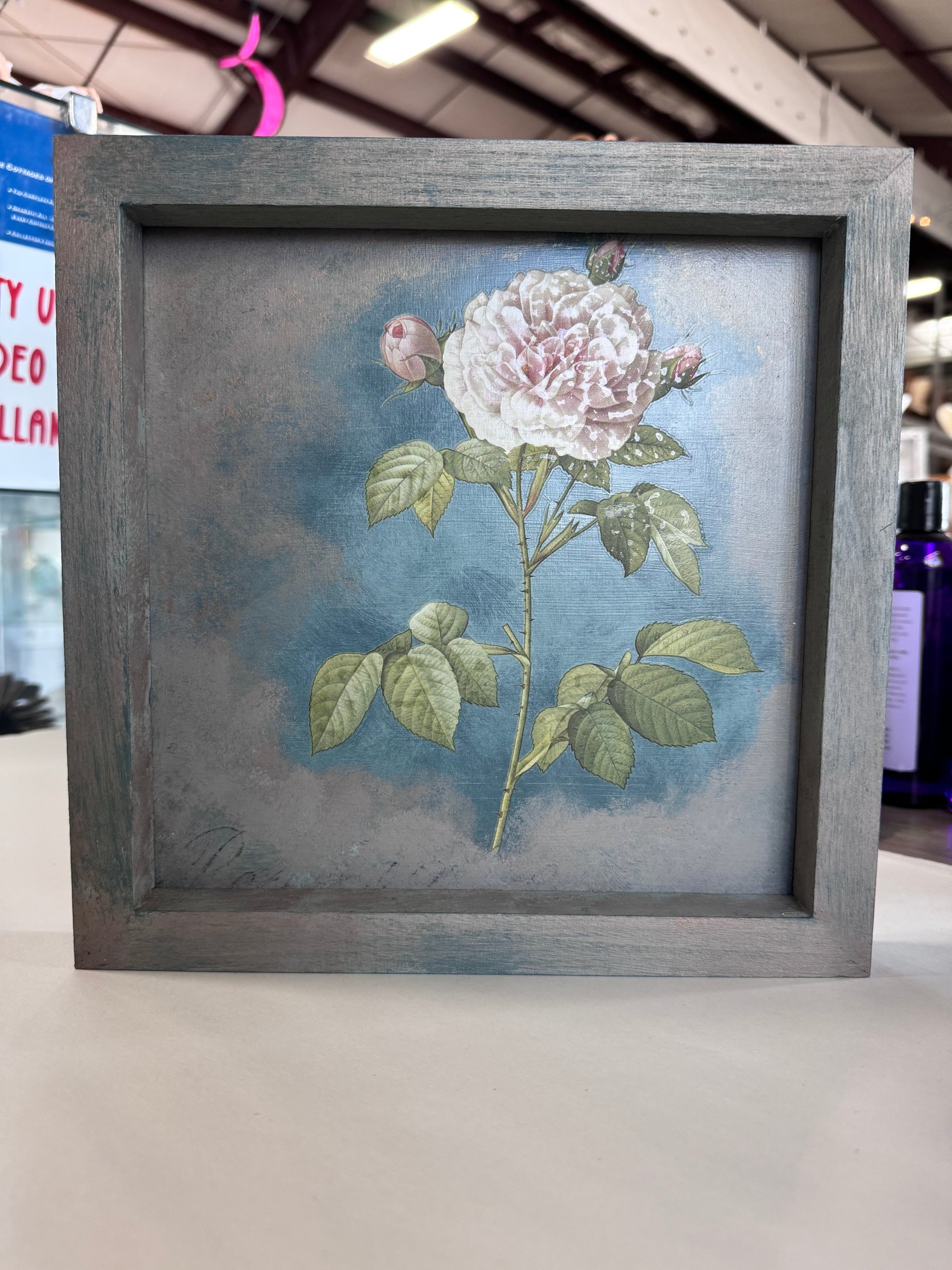 Handcrafted vintage-style wall art on wooden framed galvanized
