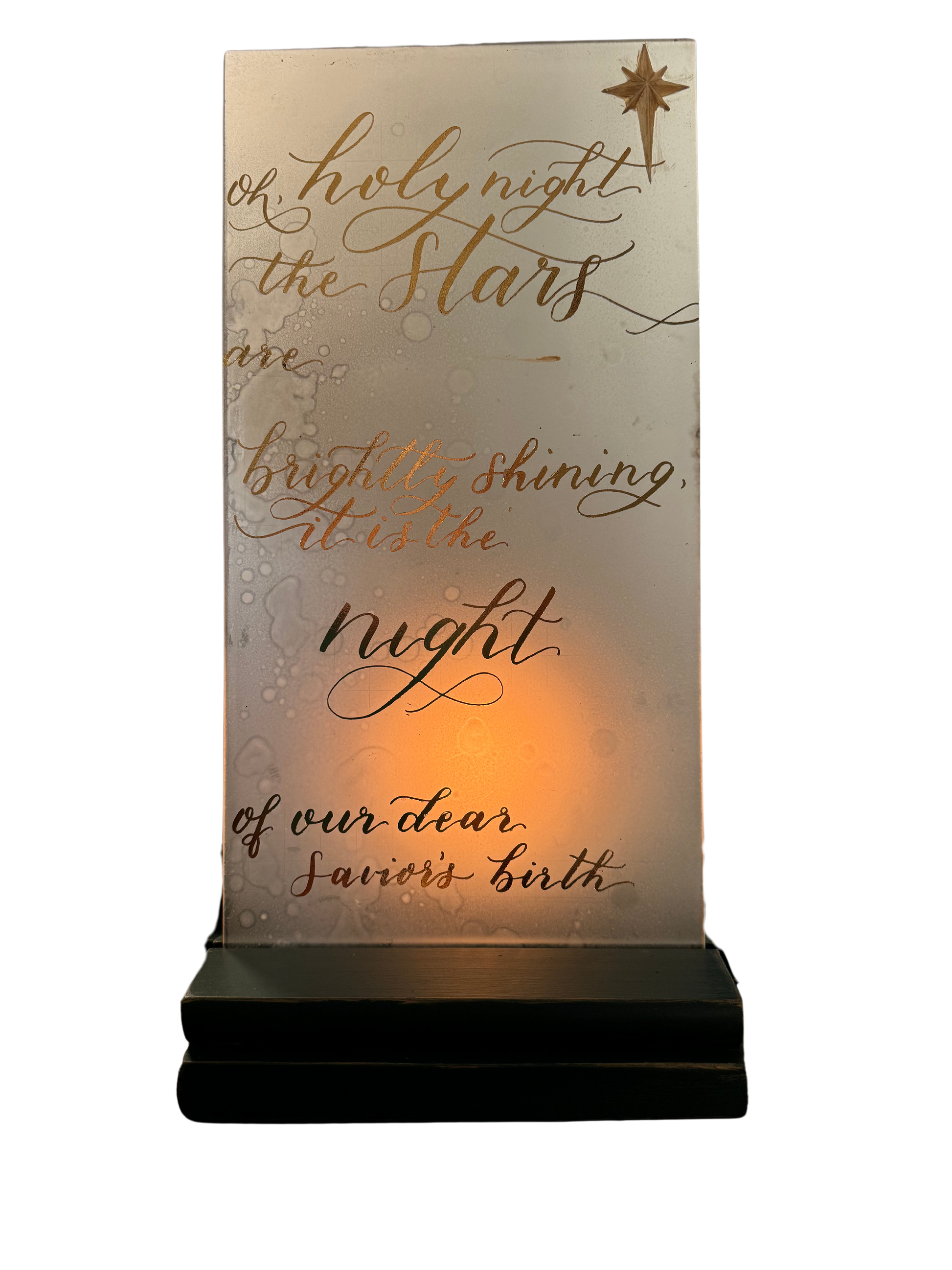 Frosted Glass Gilded Bible Verse on Lighted Wooden Base