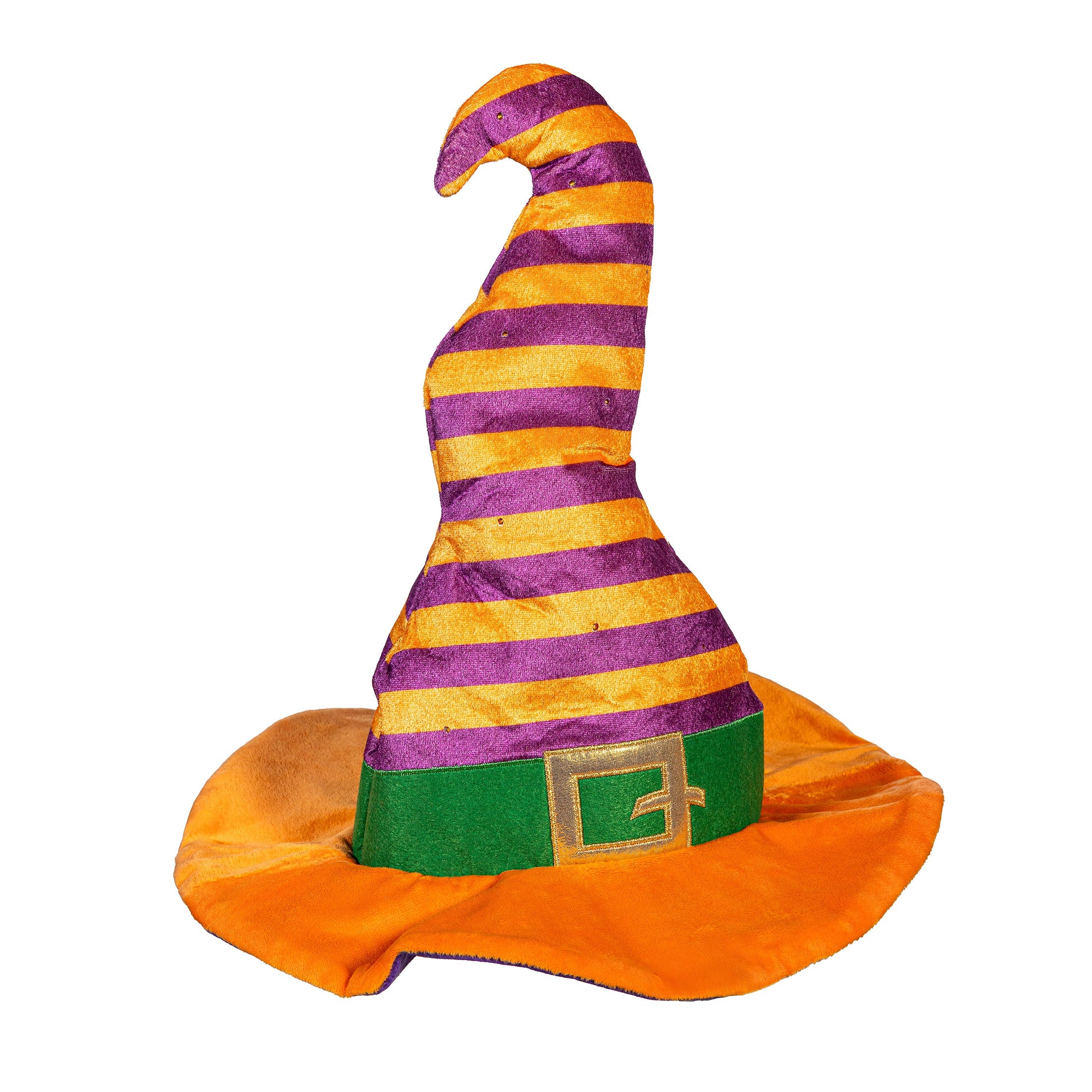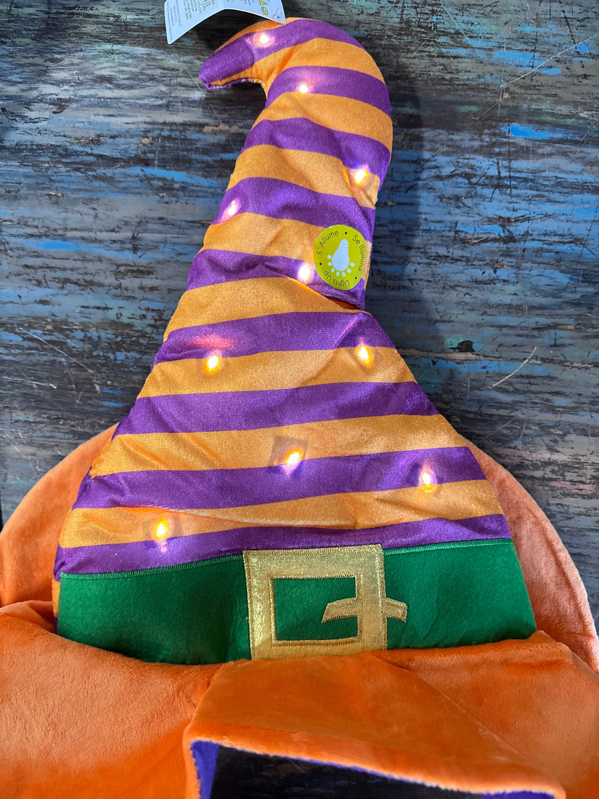 Brighten up Halloween displays with this lighted witch hat assortment. This festive piece features a classic witch hat design illuminated with glowing lights, perfect for adding a magical touch to porches, patios, or indoor spaces. Set it on Jack-O’-lanterns or wear it to finish off a costume. Its playful style and warm glow create the ideal spooky ambiance for trick-or-treaters and Halloween parties alike.