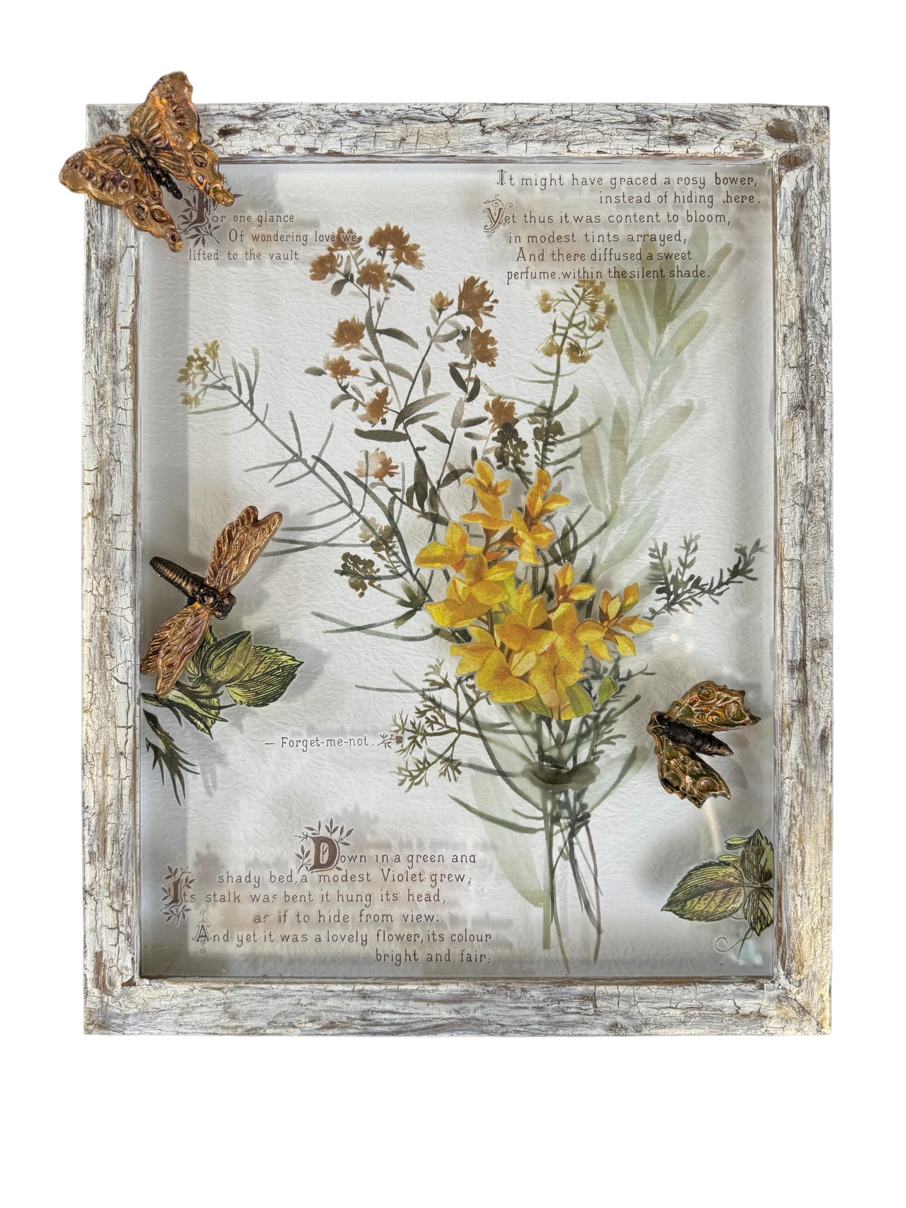 Handcrafted 3D Mixed Media Art “Glass Over Canvas Botanicals”