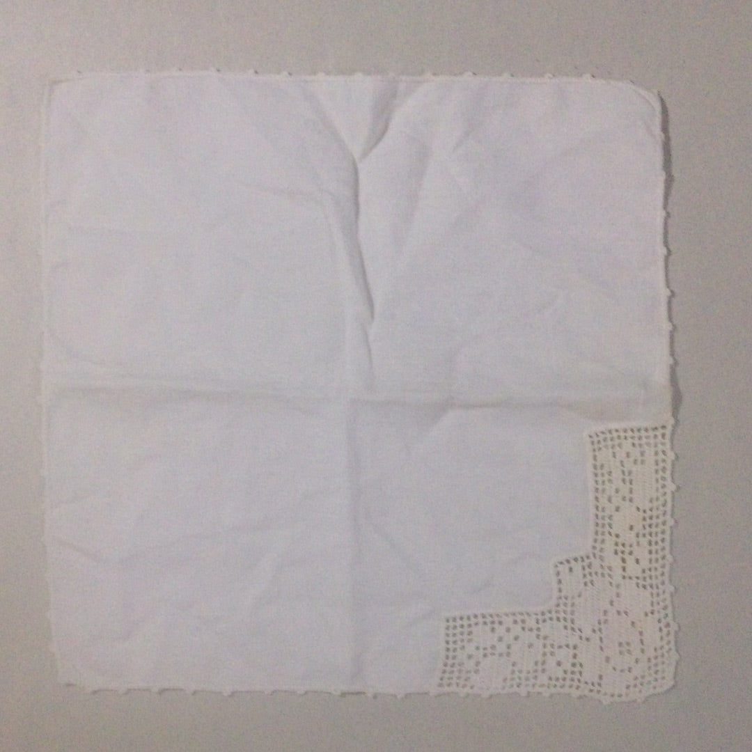 Ivory linen handkerchief with crocheted corner and border. Very good vintage condition.