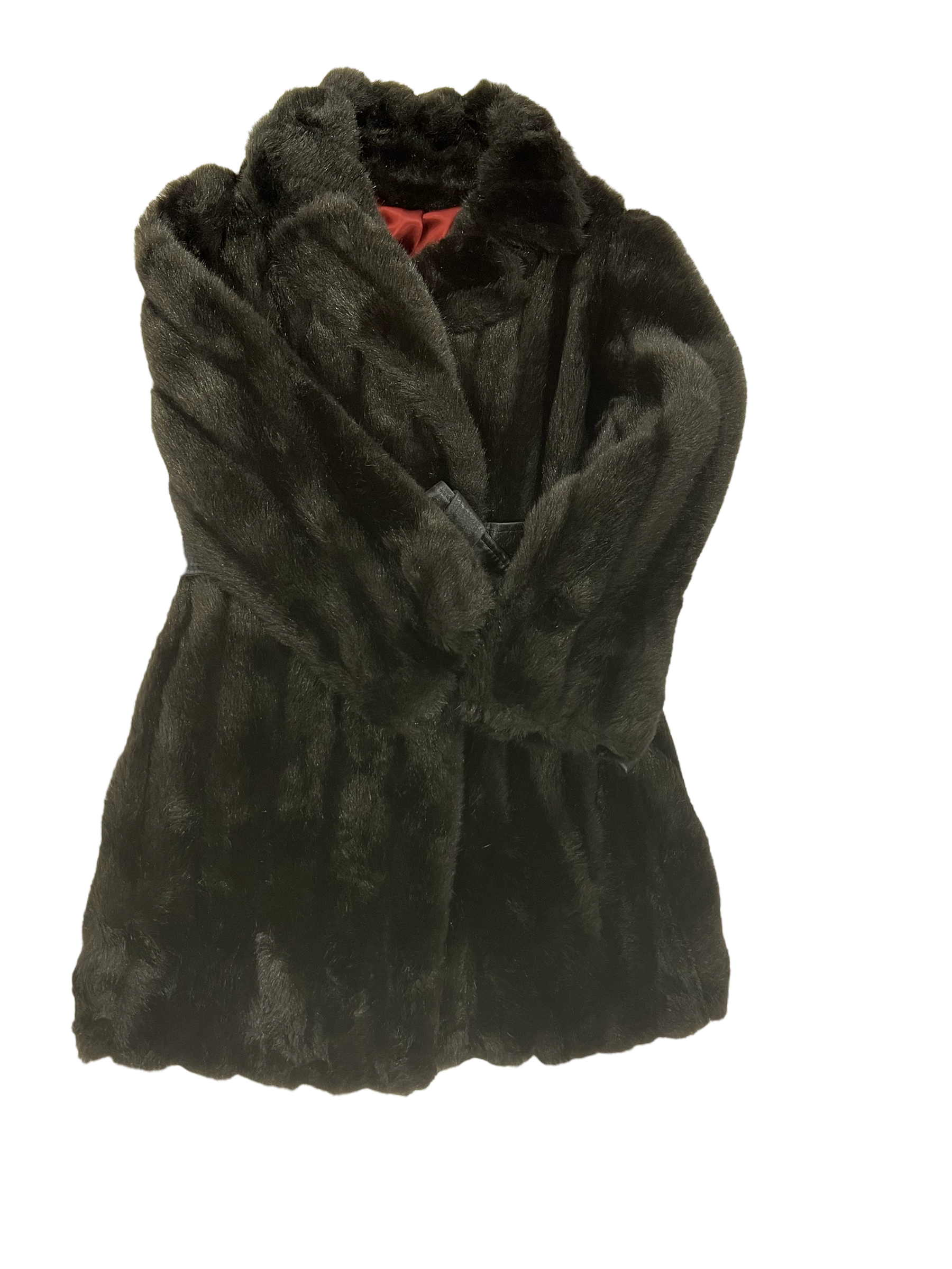 Mid Century Beeline Gold Bee Brown Strip Faux Mink Fur Coat - Size 10