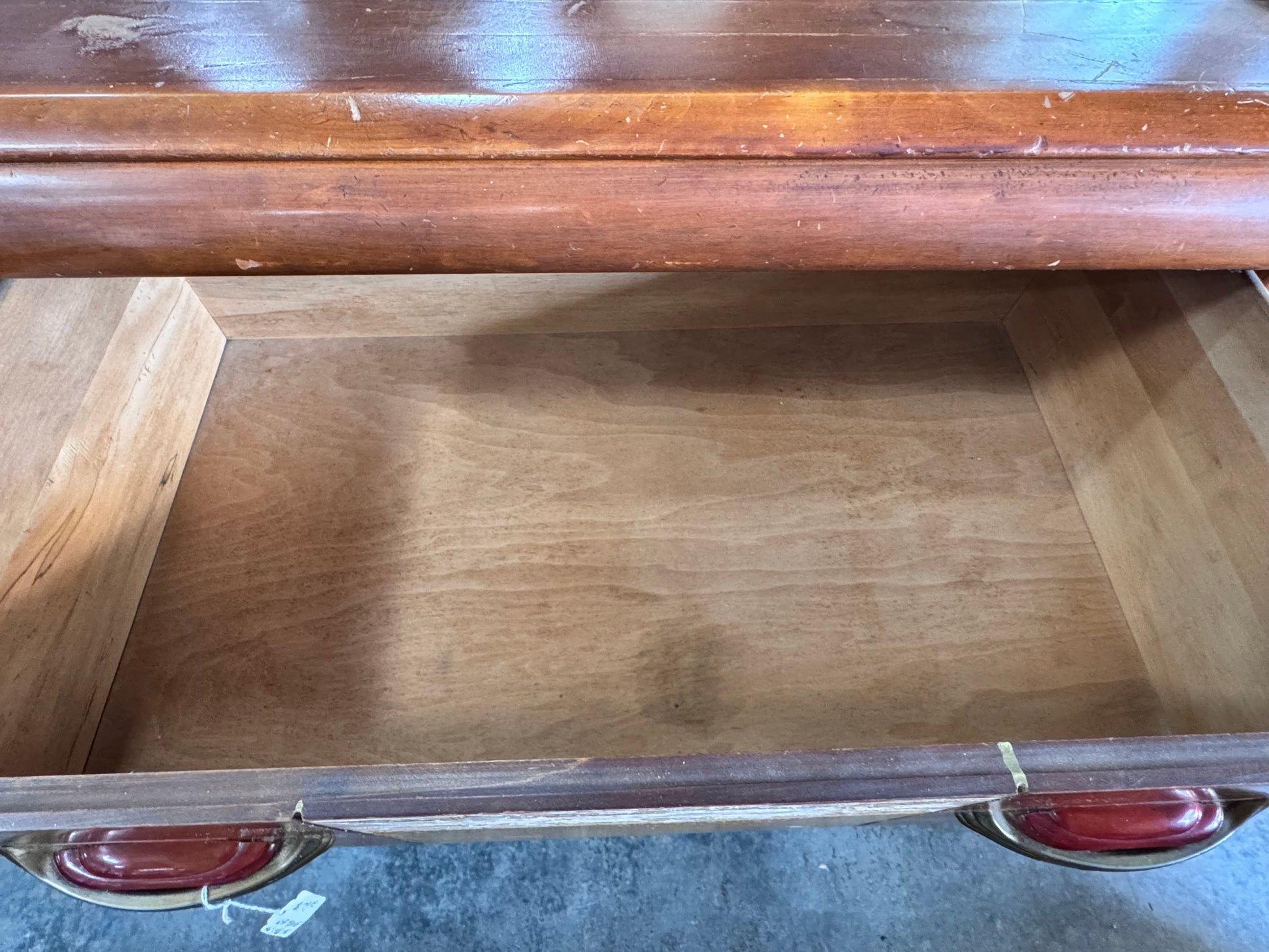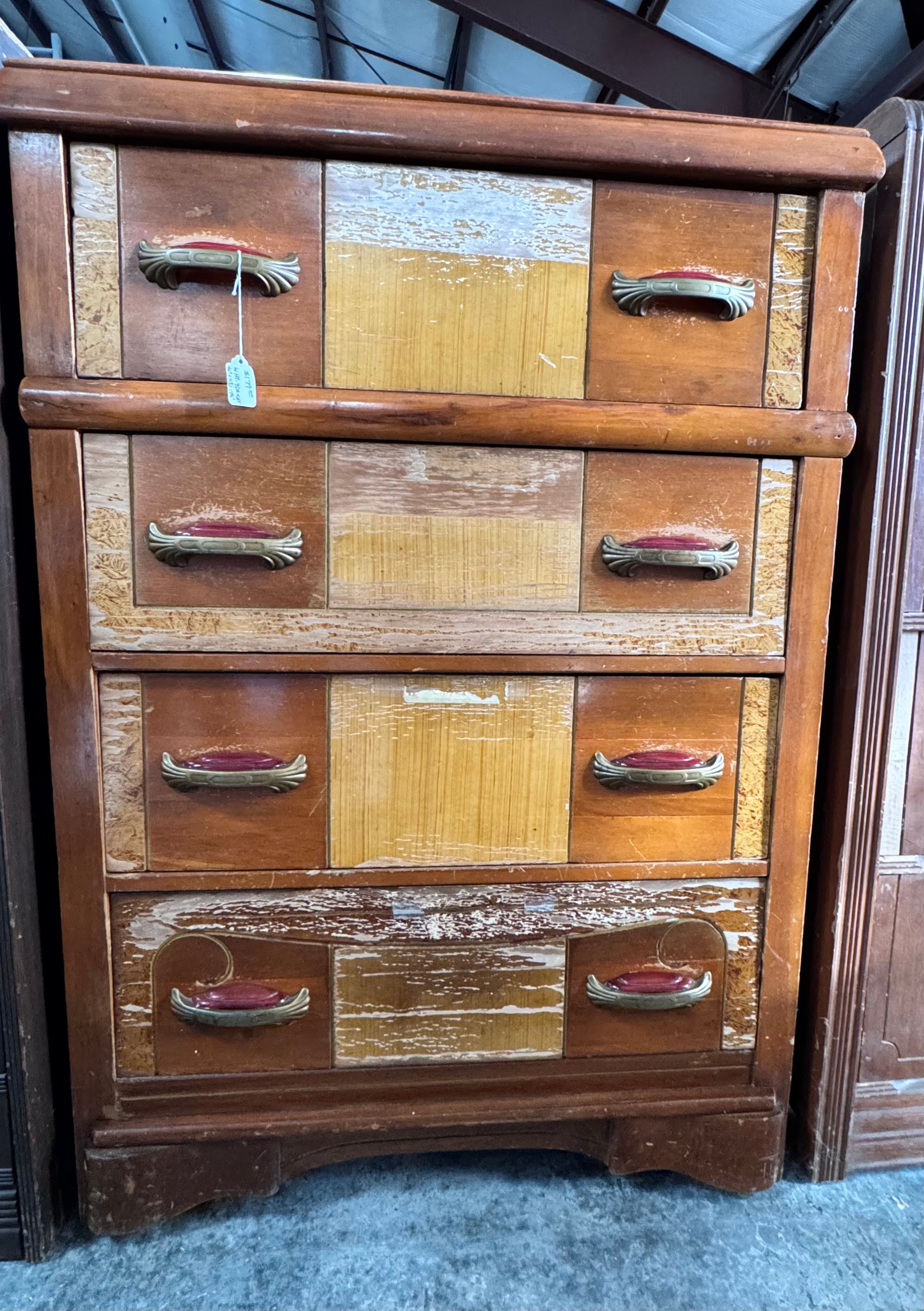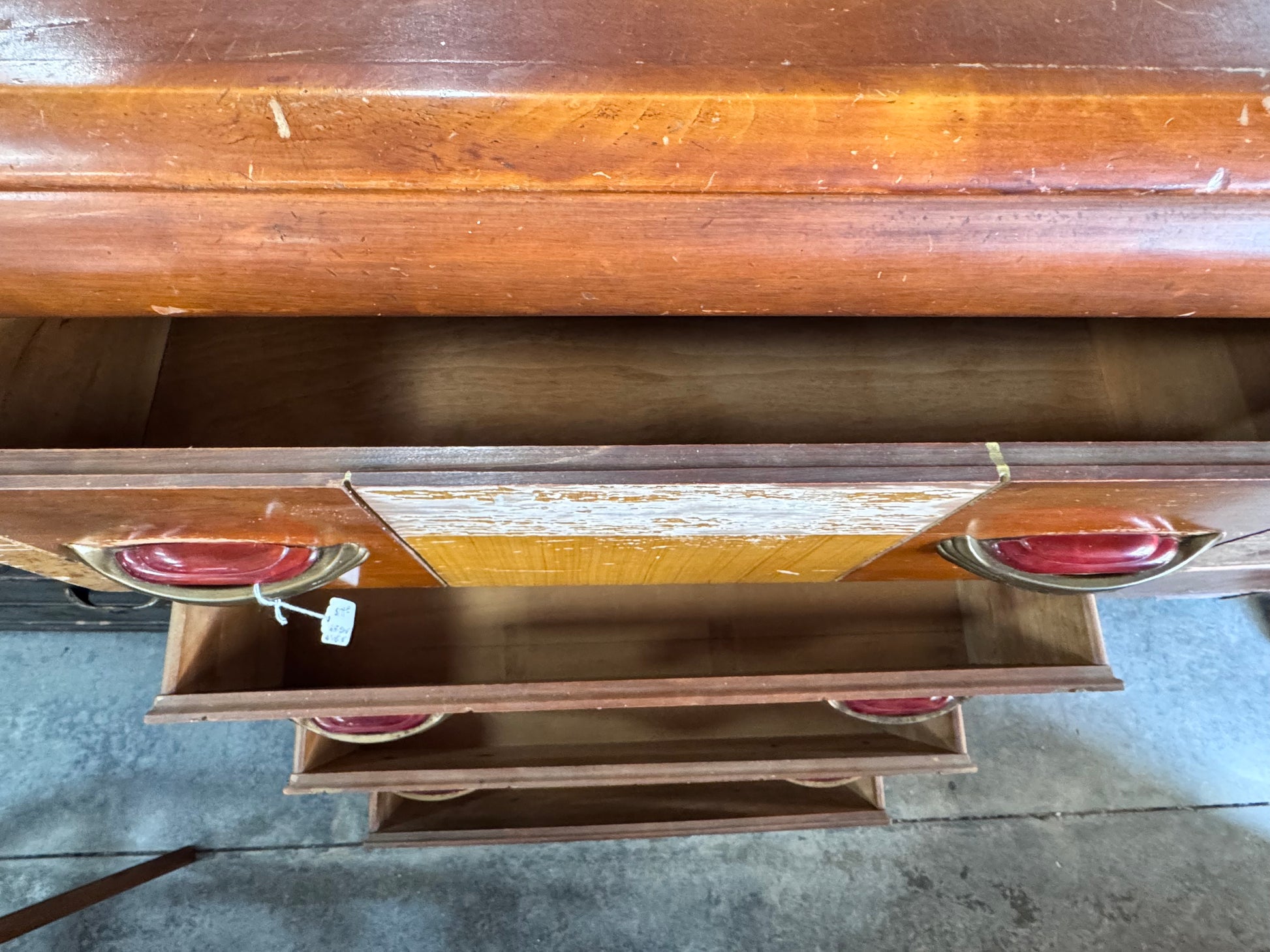 1950’s Mid Century Waterfall Style 4-Drawer Chest - veneer is in good condition - all drawers are functional - residue from scotch tape/masking tape