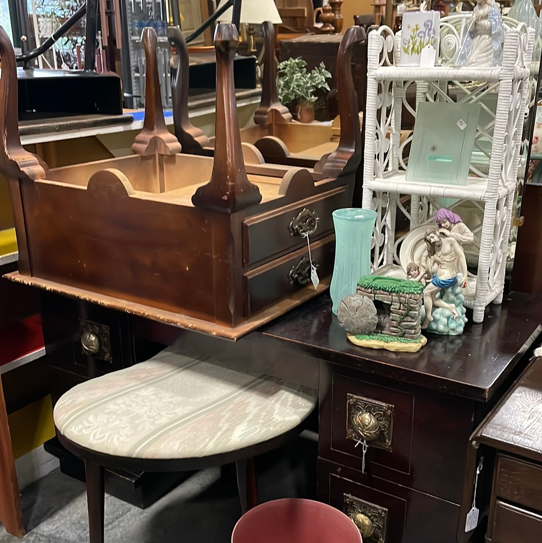 dressing table with mirror and stool: 60 1/2” H x 46” L x 20 1/2” W