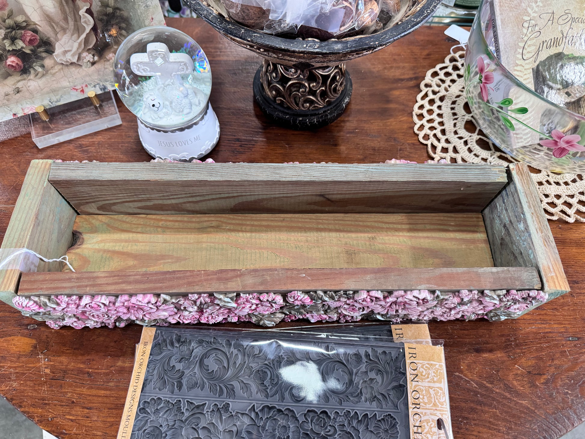 Pick-A-Kit Woden Planter Box featuring Roses and Florals from the Iron Orchid Designs Trimmings 4 Mould Castings.
