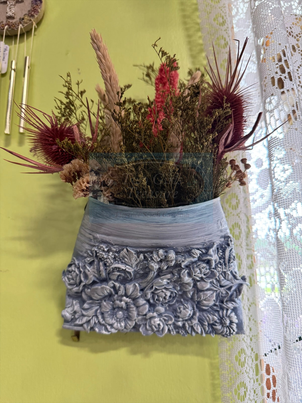 It’s a great time of the year for Posie Pockets! Created using Trimmings 4 and Rethunk Junk Paint in a blend of Hydrangea Kiss and Farmhouse Navy with Pearl Metallic Accents. Flowers make me happy; dried and resin!