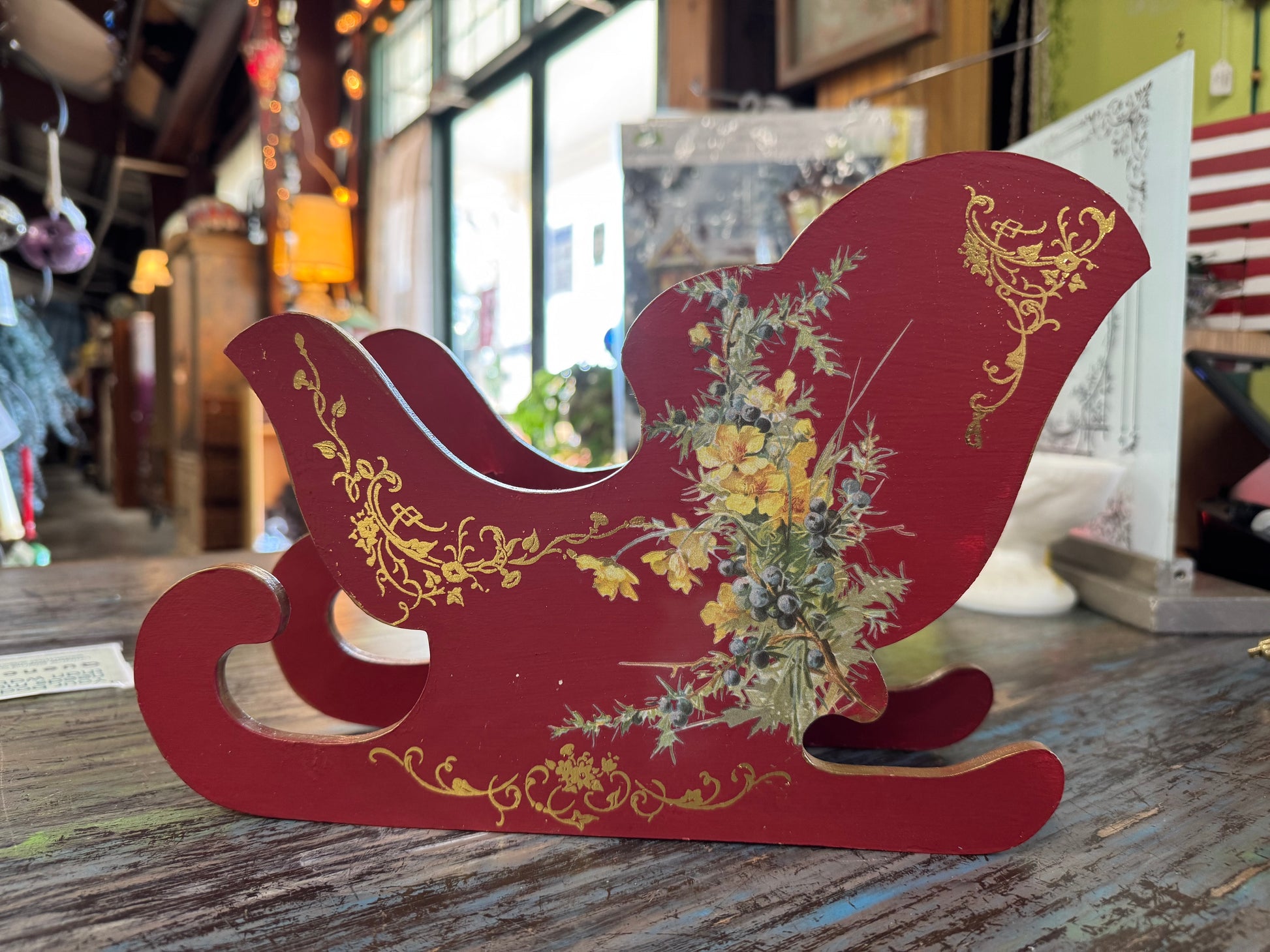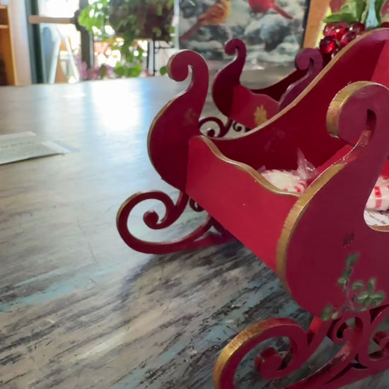 Custom finished in a rich Christmas red with roses and flourishes. Each sleigh is custom finished and no two are exactly alike.