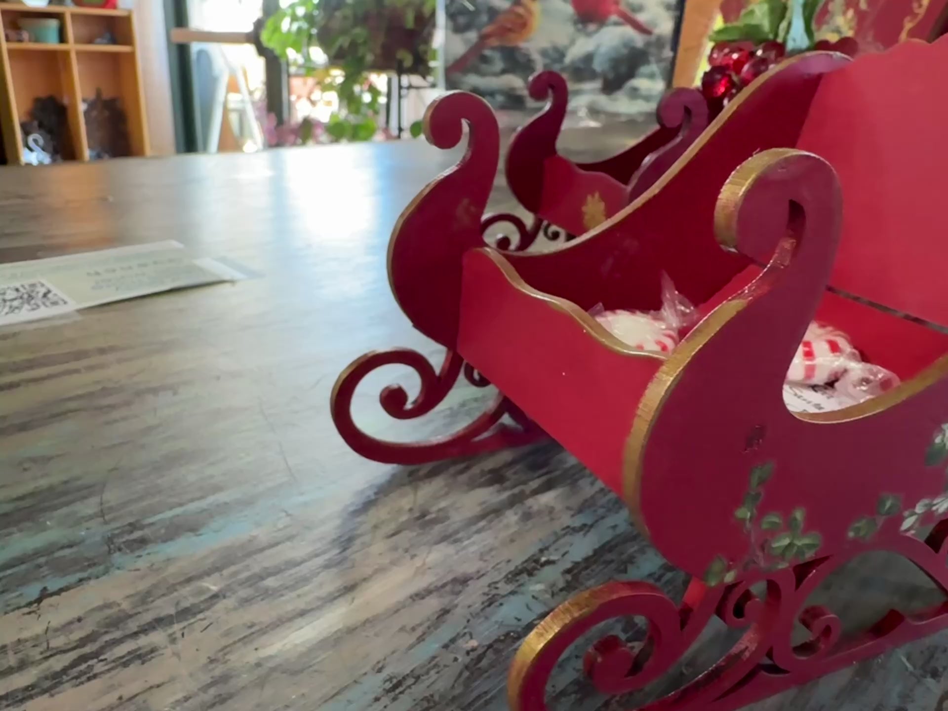 Red Christmas Santa’s Sleigh decor display Candy Dish