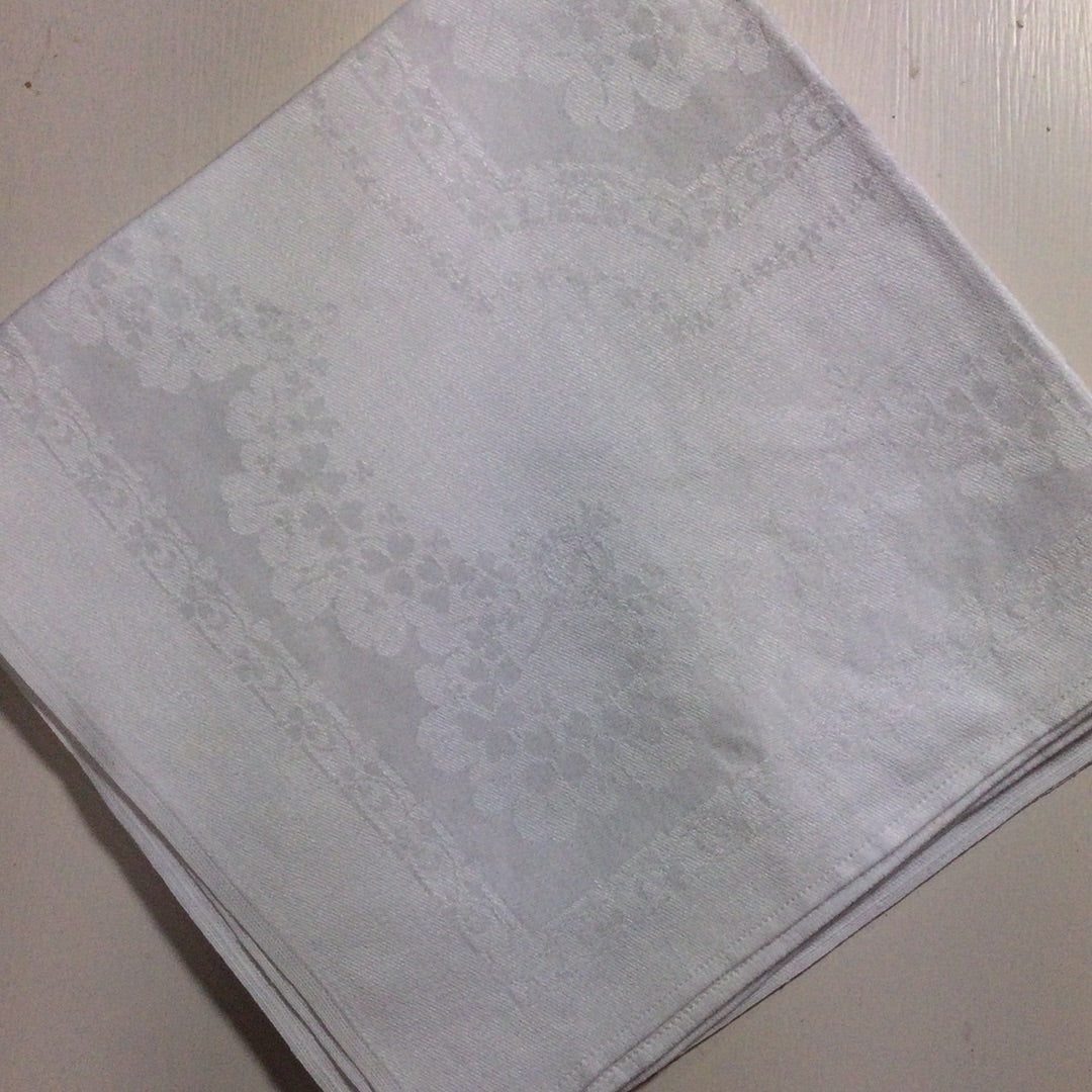 Set of 3 white linen damask dinner napkins. Very good vintage condition.