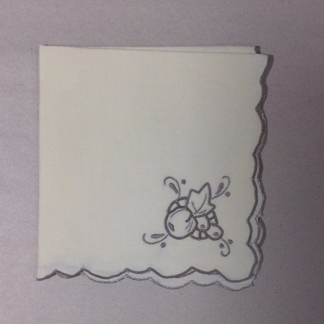 Set of 6 yellow linen dinner napkins with grey embroidery and edging. Like new.