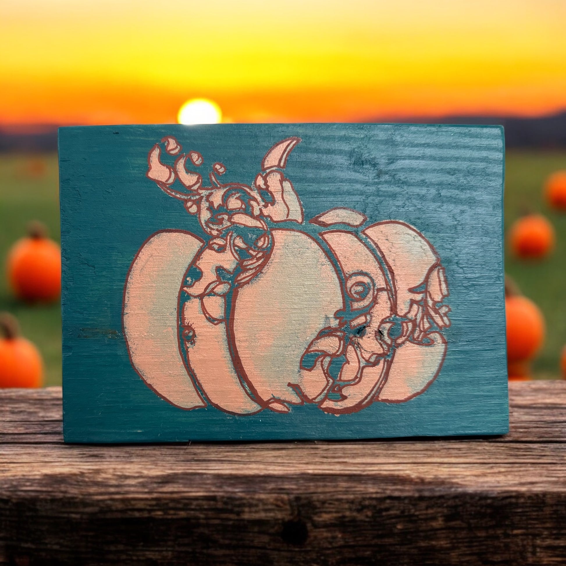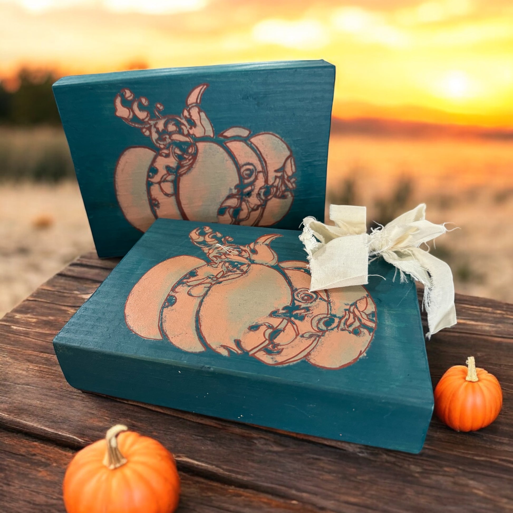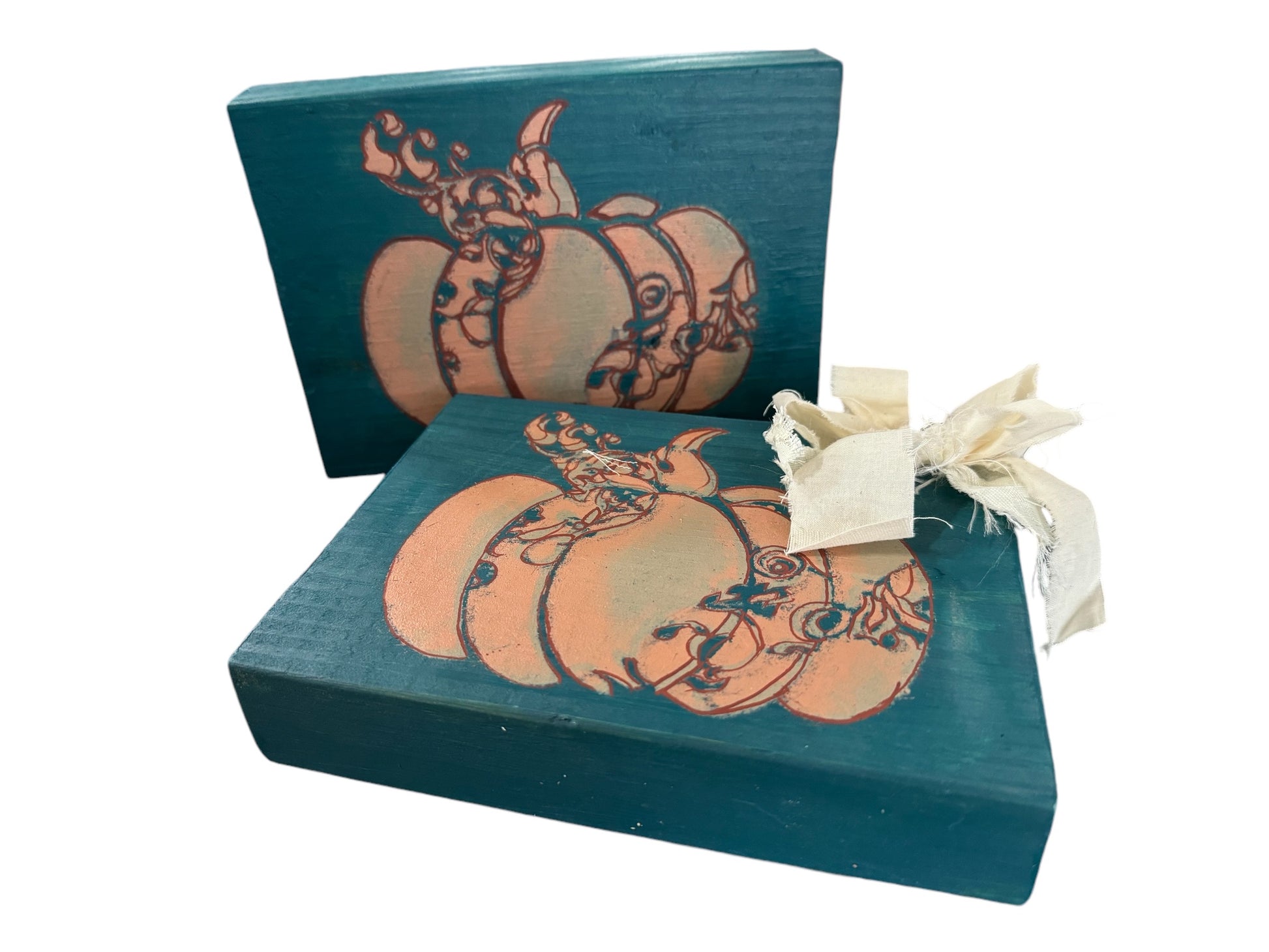 Sunflowers & Pumpkin Series Scrolled Painted Pumpkin Shelf Sitter