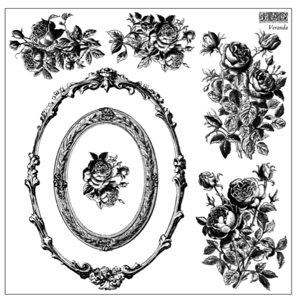 Viney lattice, oval frames and roses for Spring stamping! 12” x 12” 2-sheet set