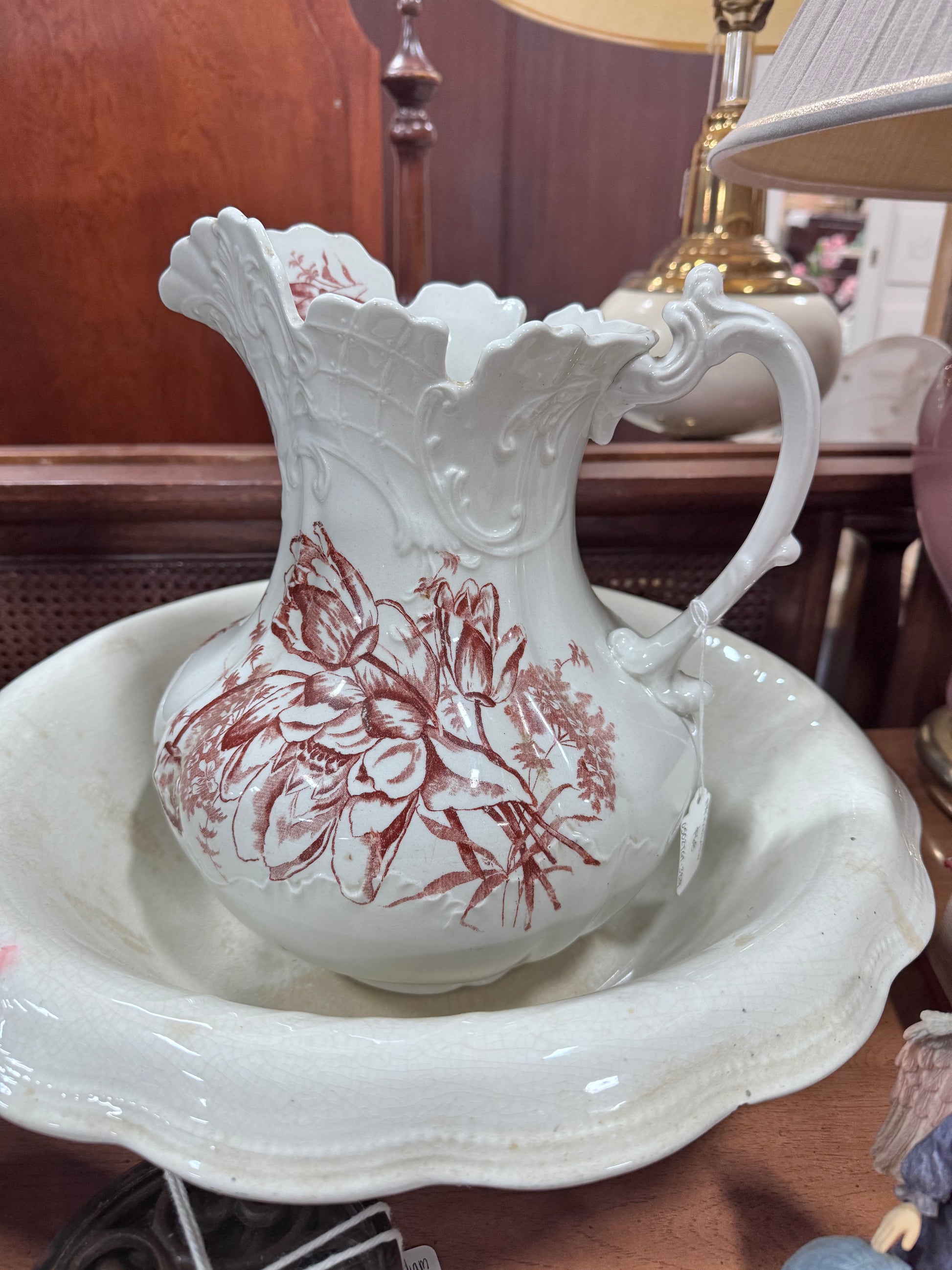 Vintage Burgundy Floral Large Water Pitcher