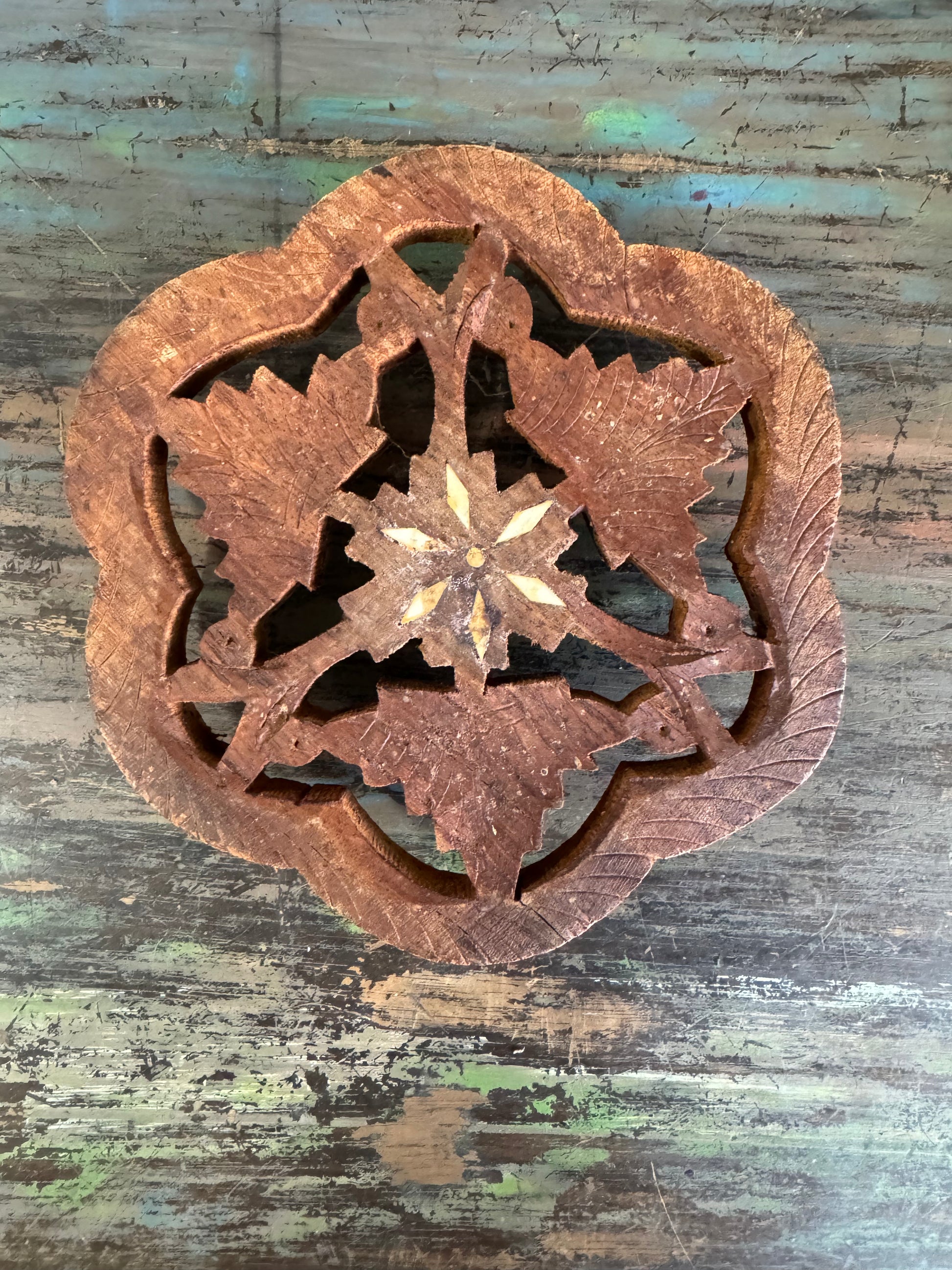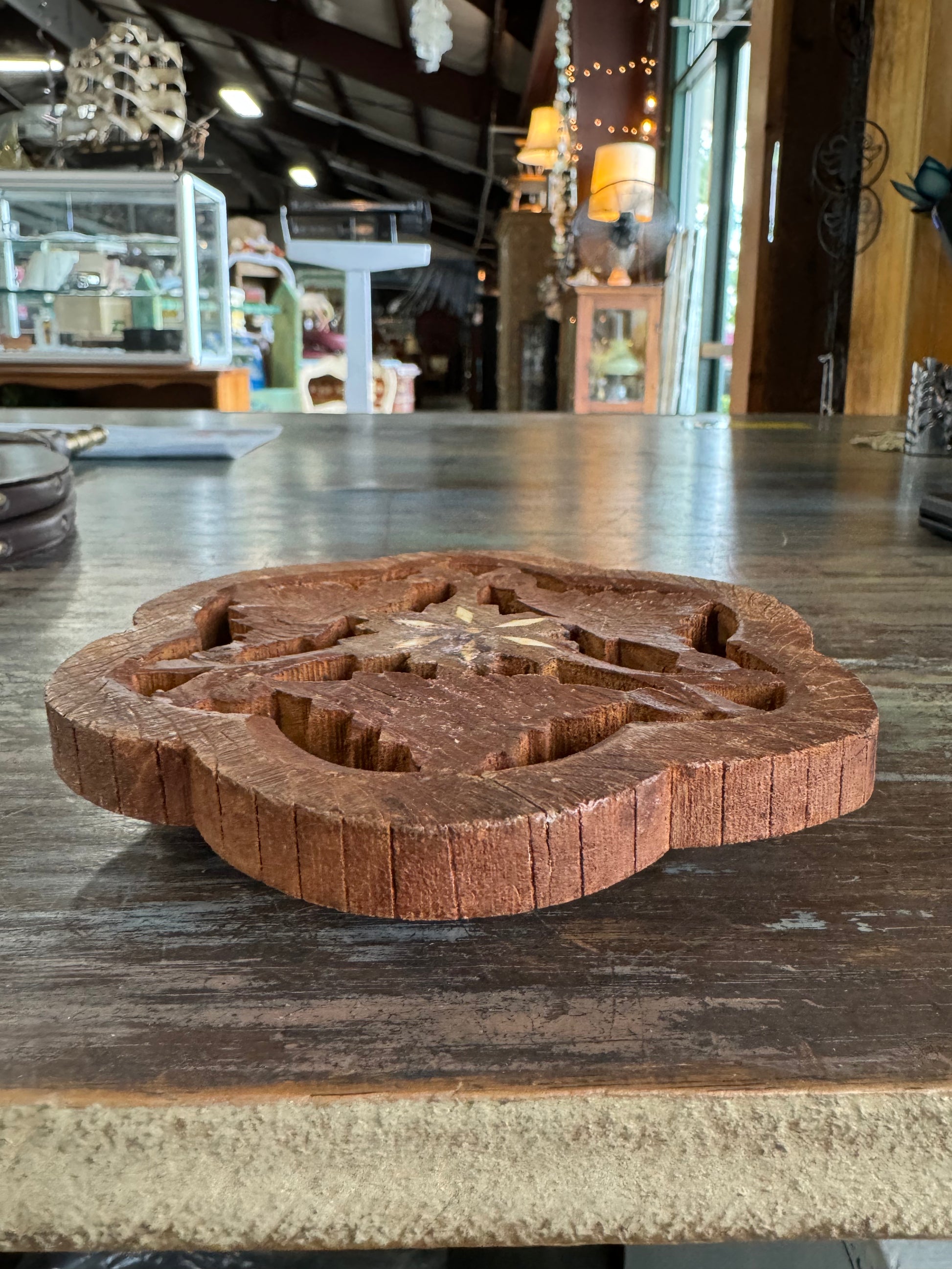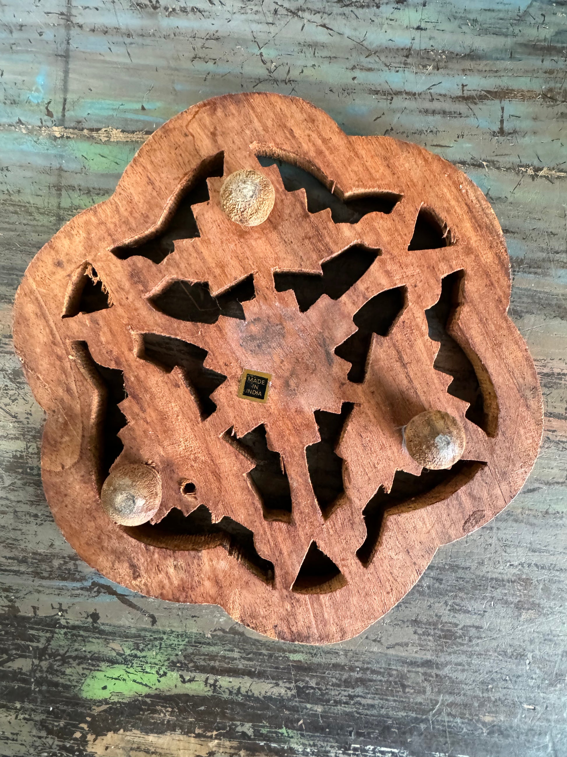 Vintage Hand Carved Wood Trivet - Made in India