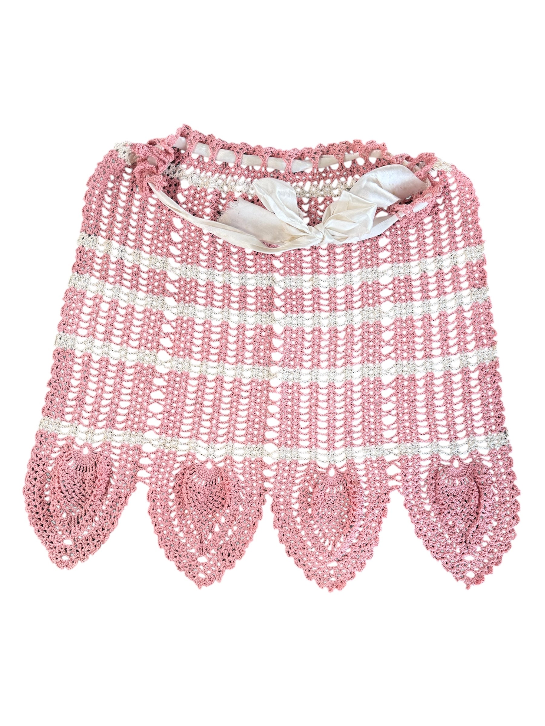 Vintage Hand Crocheted Pink and White Apron