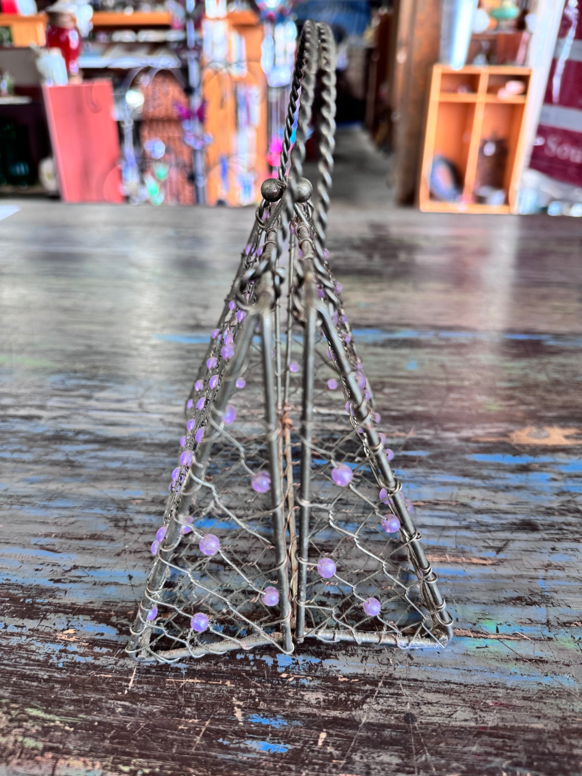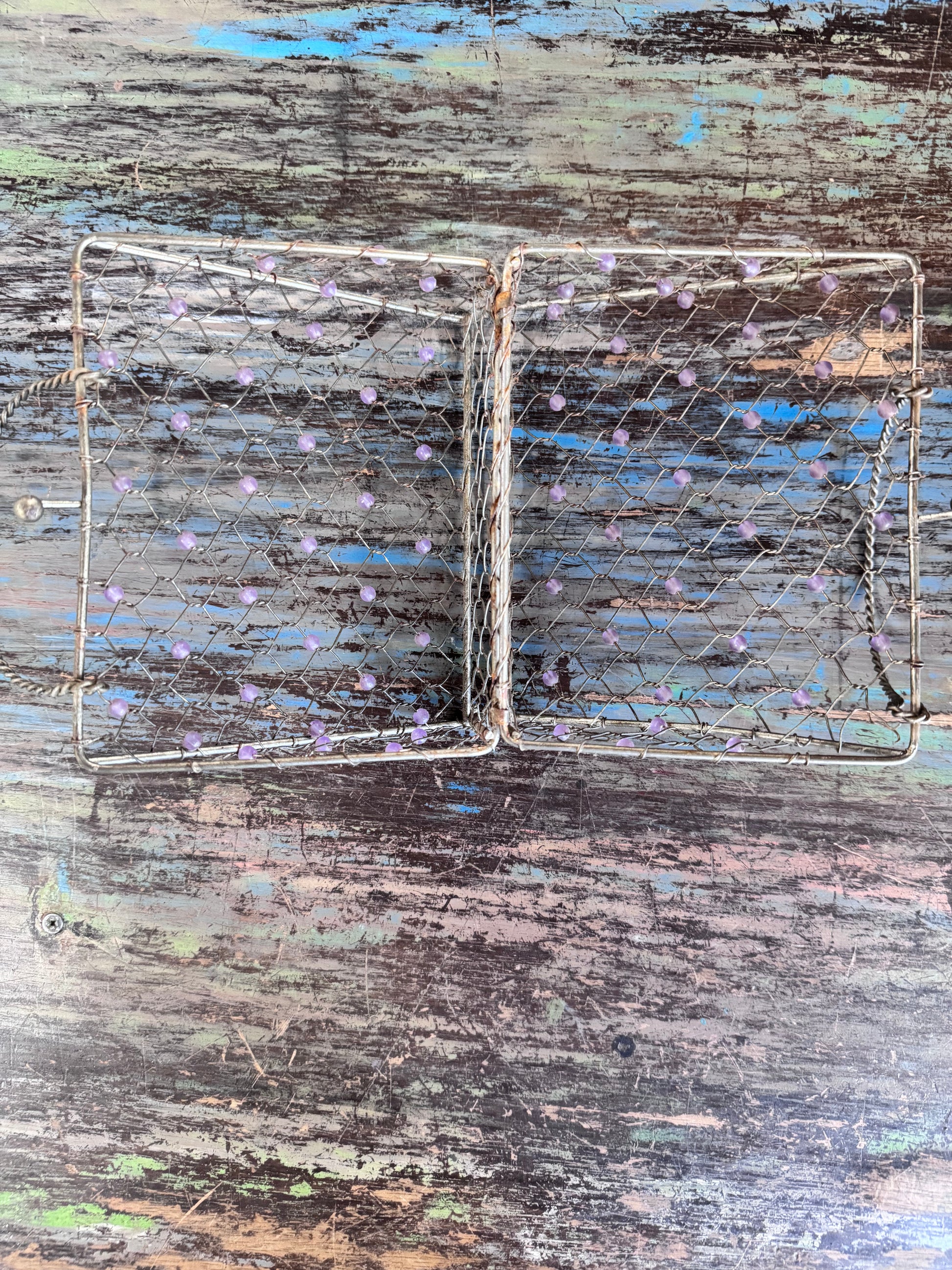 Vintage Metal Cage Purse w/Purple Beads