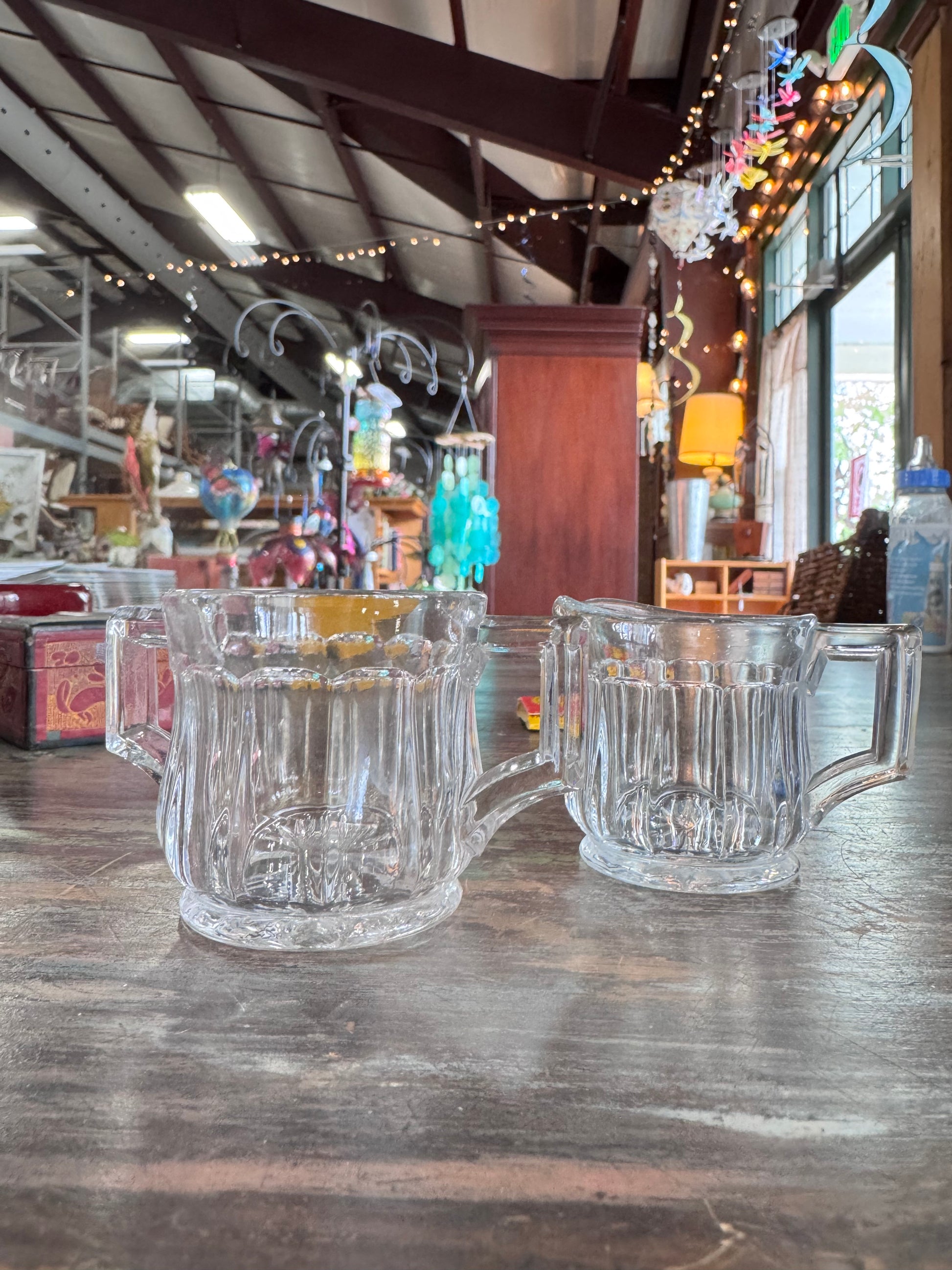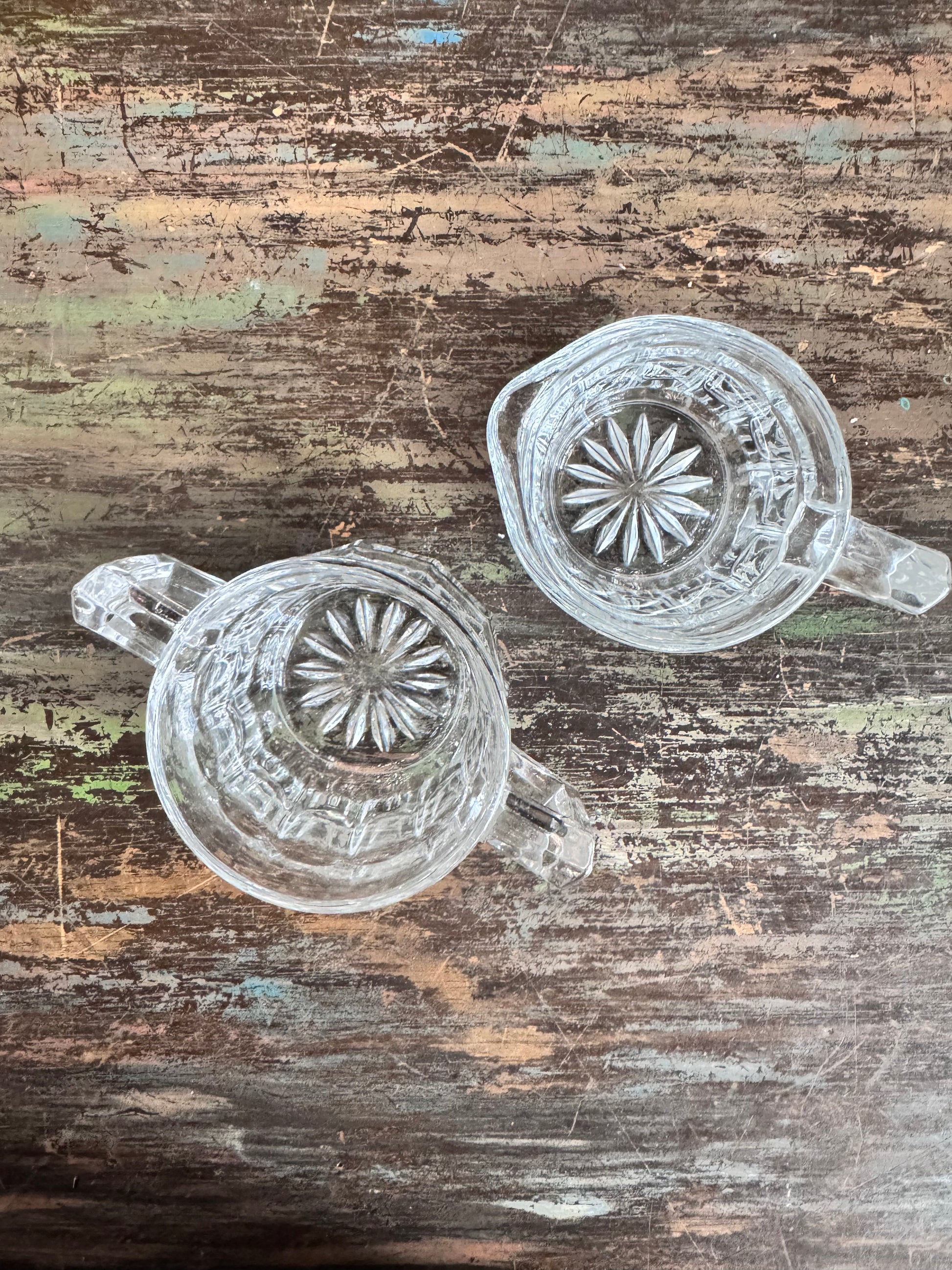 Vintage Starburst Clear Glass Sugar and Creamer Set