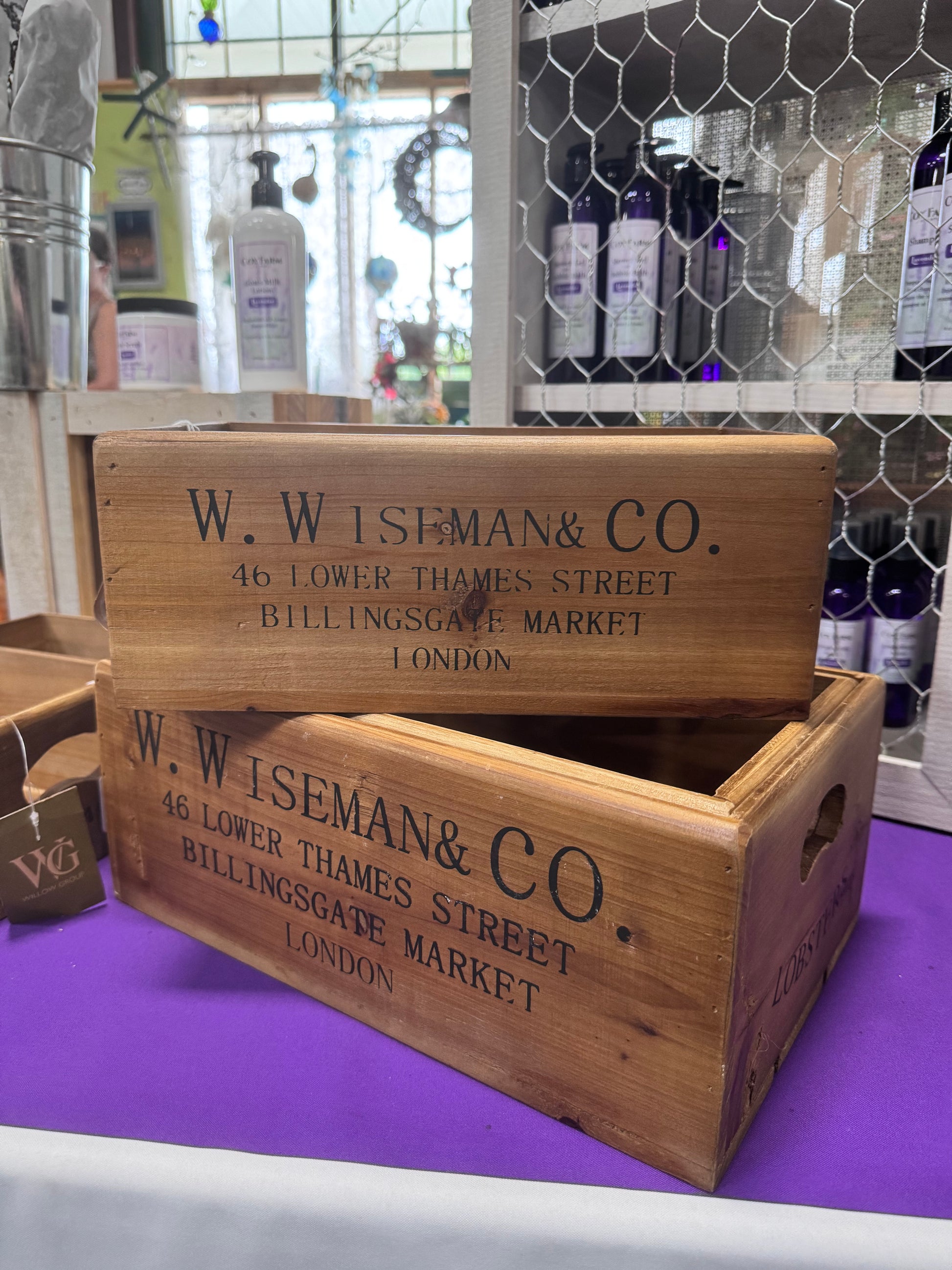 Walnut Crates reproduction Billingsgate Market Fish Crates in a variety of stackable sizes