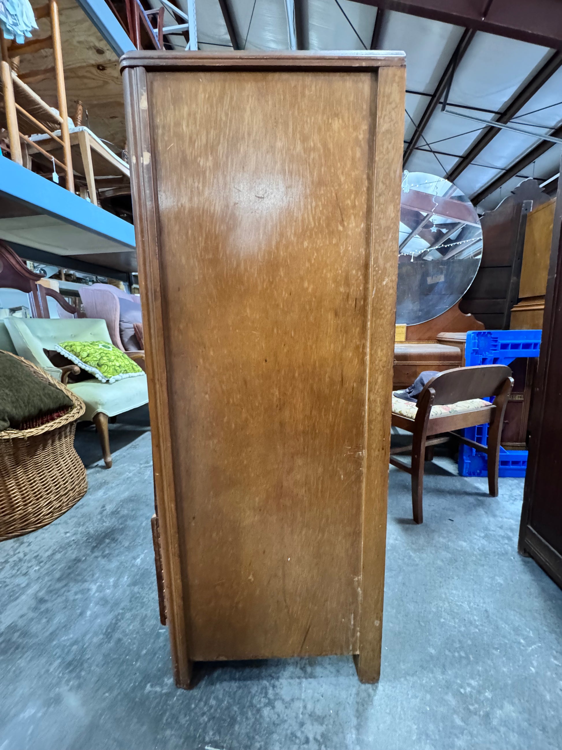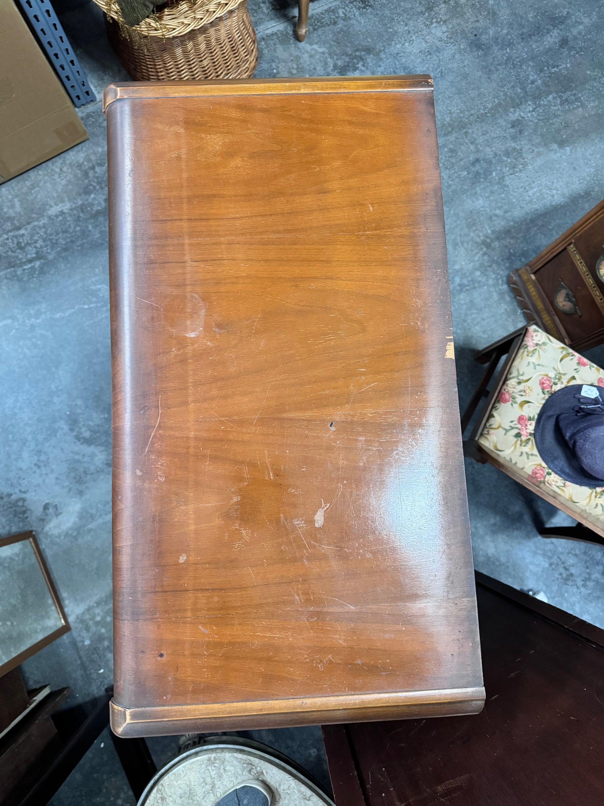 Waterfall 4-Drawer Chest. Good vintage condition - all drawers are functional - all 8-original drawer pulls - some obvious veneer chips