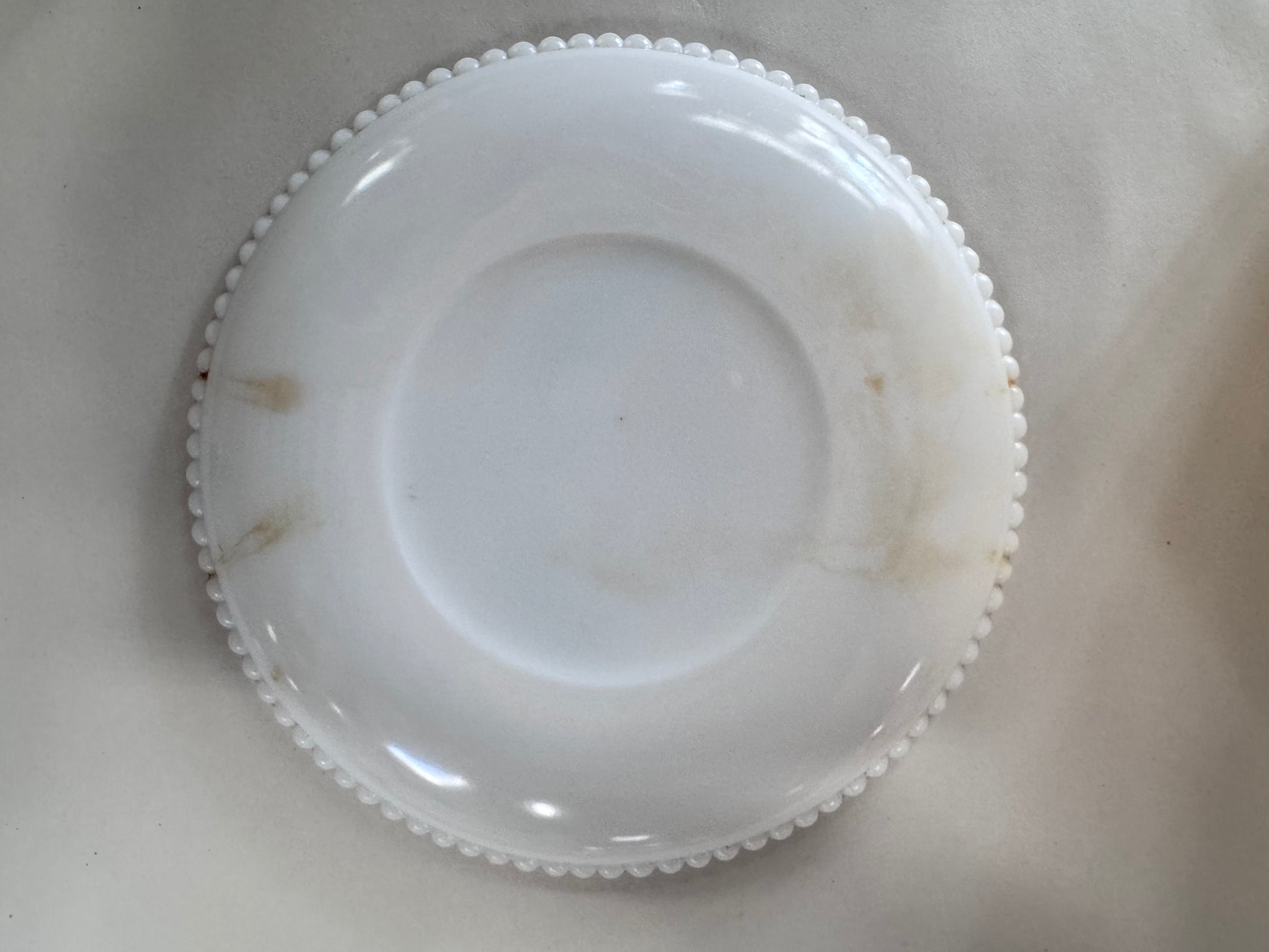 Westmoreland Beaded Edge Milk Glass Plate w/ Hand Painted Apple