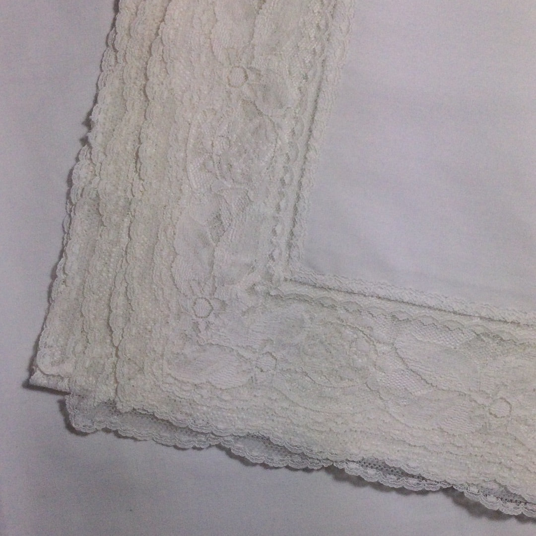 Approximately 80”x60” lace edged tablecloth. Very good vintage condition.