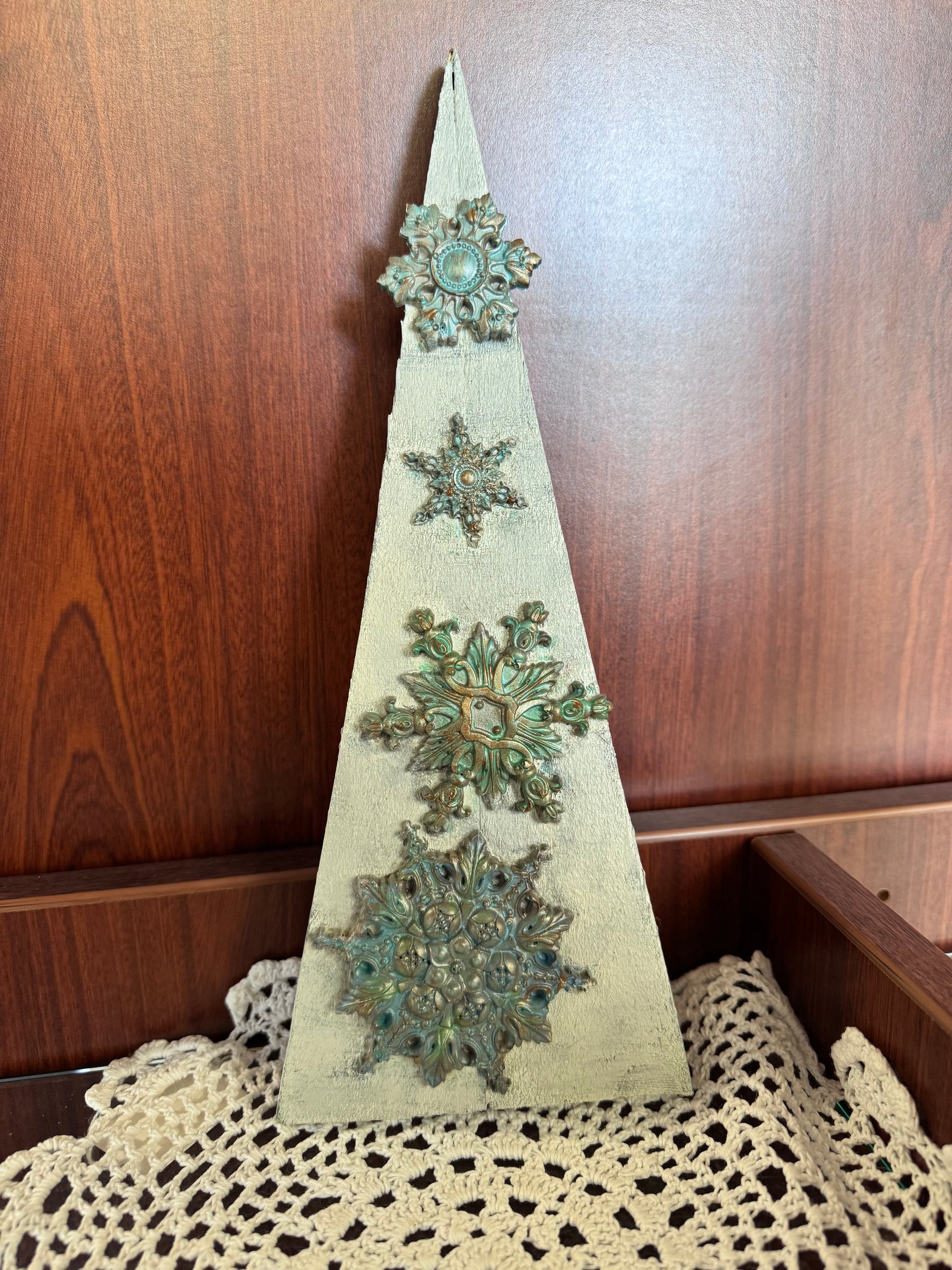 Wooden Merry Christmas Tree Vintage Winter Snowflake Tree